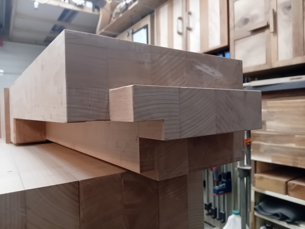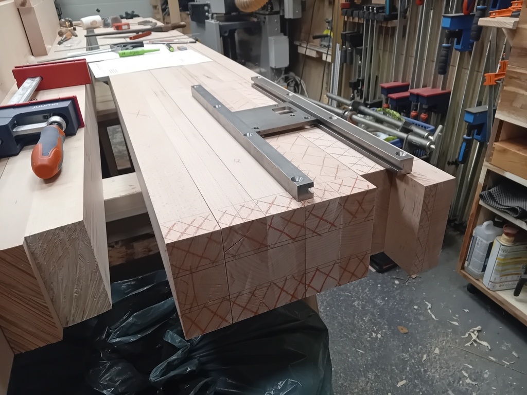 Pour la presse latérale j'usine le maximum avant le collage des planches parce qu'il y a de grosses quantités de bois à retirer pour le passage de la presse et je n'ai pas de grosse fraise pour de genre de travail.