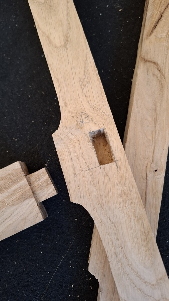 Une remarque toutefois, dans votre étude, avez-vous traité l'arrière du piètement ? Il y a 10 cm de bois de fil pour résister à des efforts importants lors de l'affalement d'une personne en surpoids. Je placerais en renfort une plaquette collée à l'intérieur pour couvrir la zone sensible.