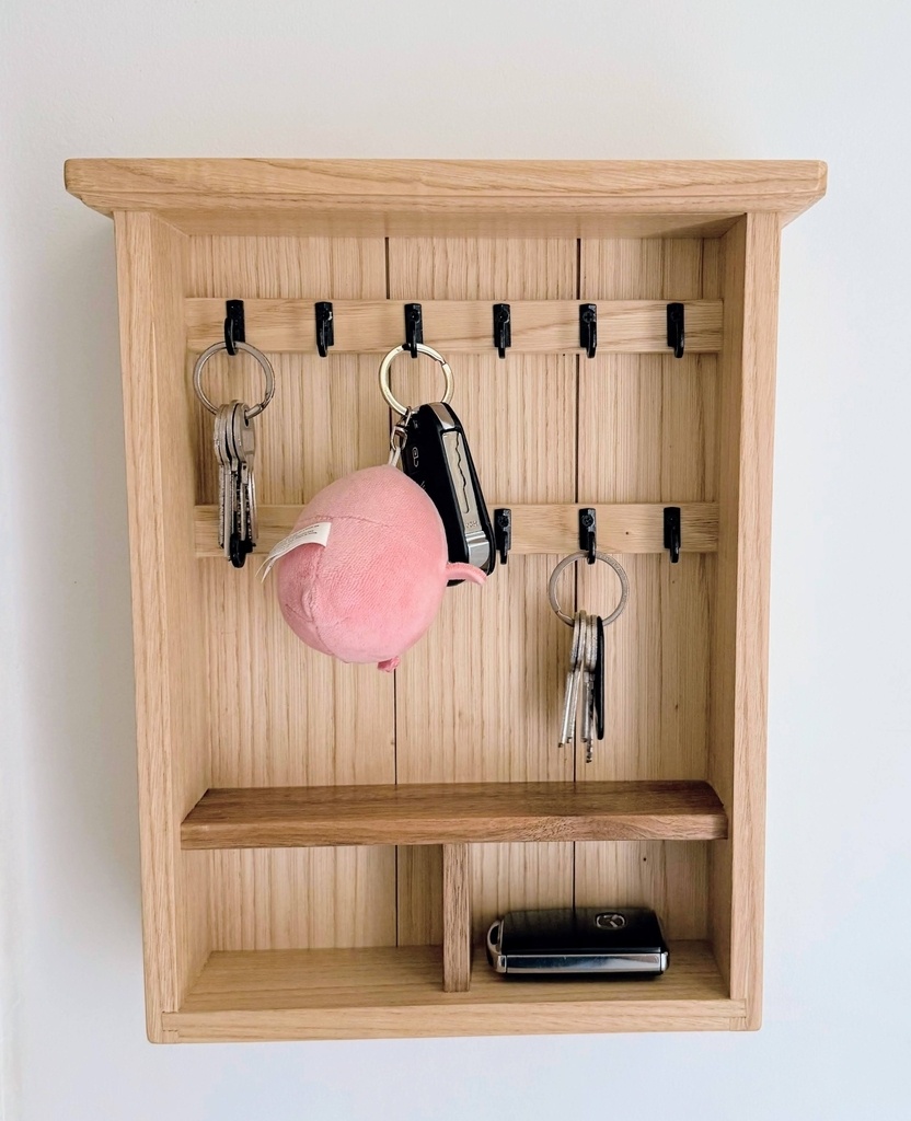 Je vous présente cette petite boîte à clés réalisée en châtaignier.