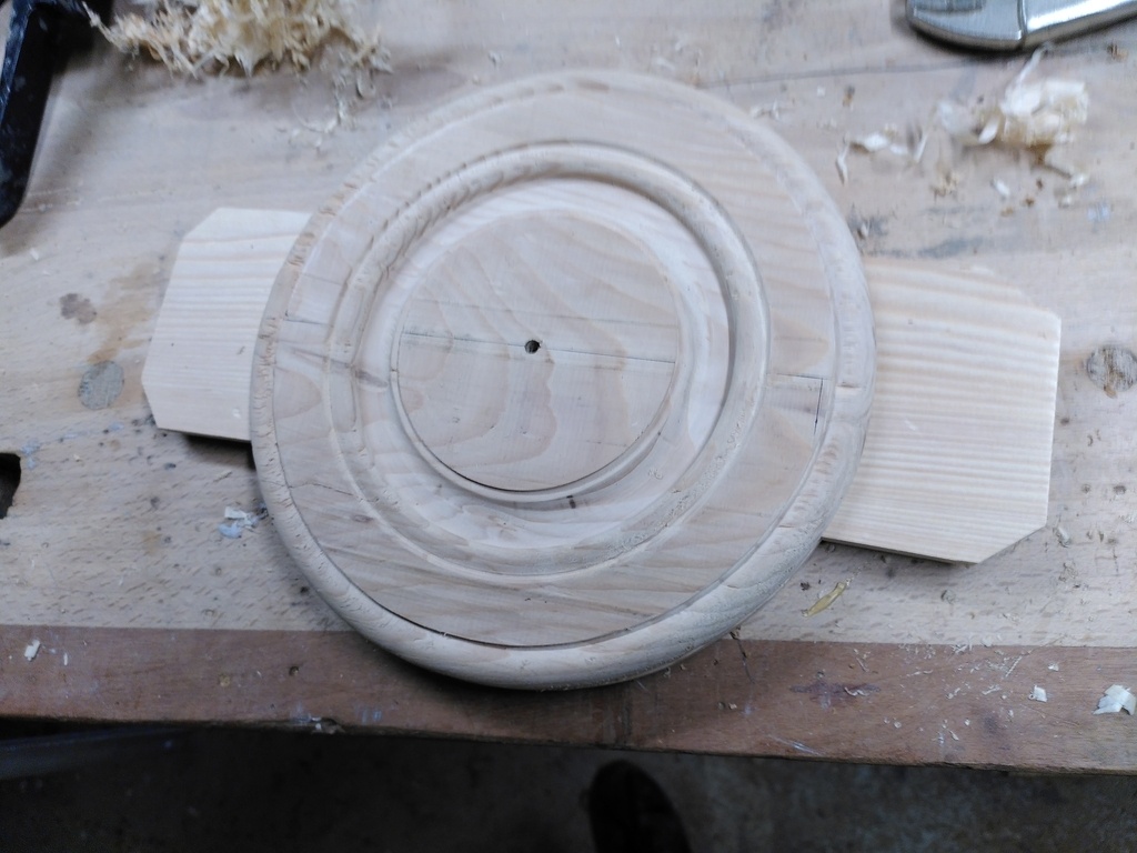 La moulure était une sorte de mouchette, donc refouillée. Pour les parties cintrées, nous avions utilisé un champignon qui se monte sur la toupie avec une courroie. Les plates-bandes ont été refaites au guide météore.