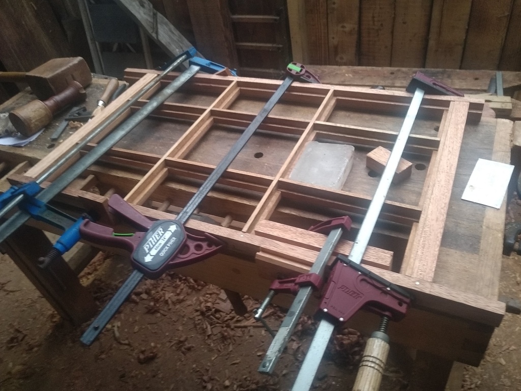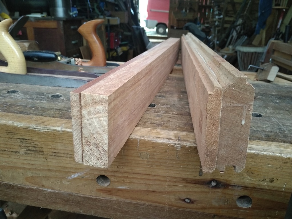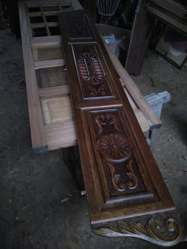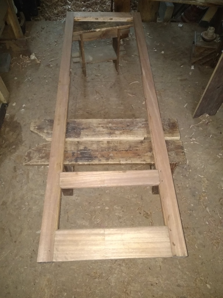 Pour le redimensionnement il m'a fallu scier les montants et les réassembler au moyen d'une enture horizontale à clé (comme un trait de Jupiter).