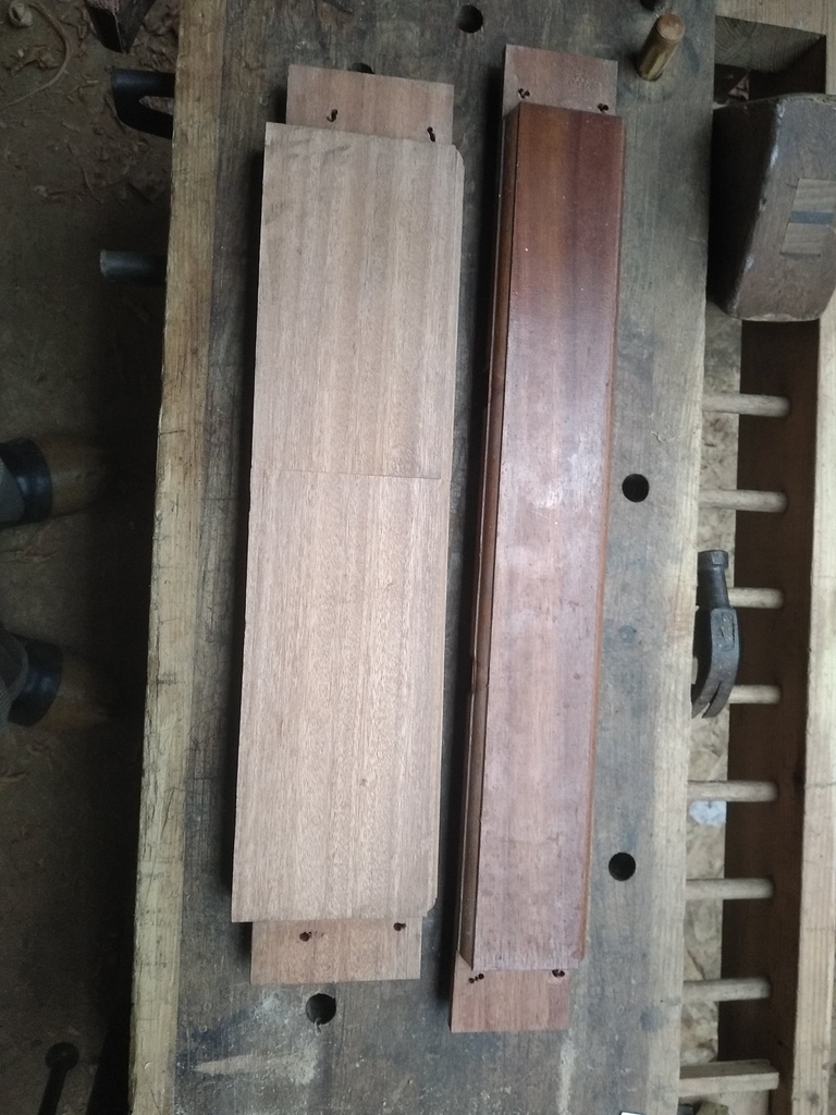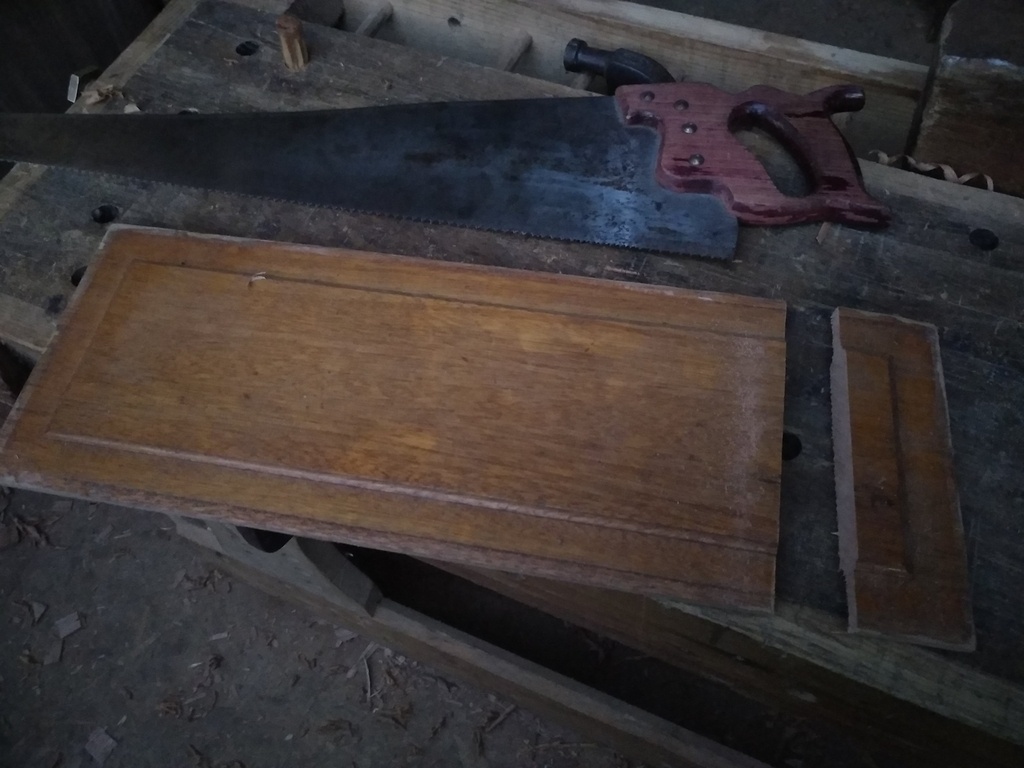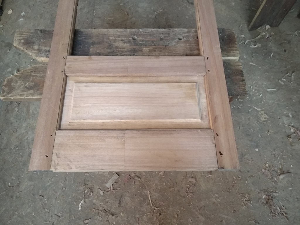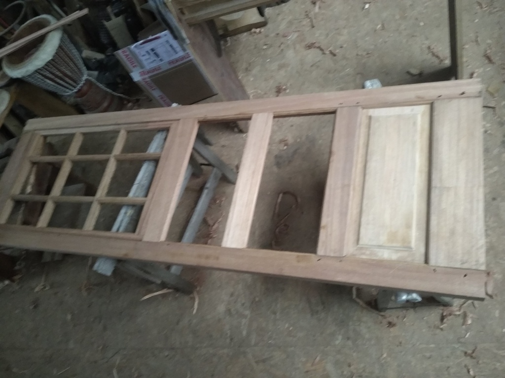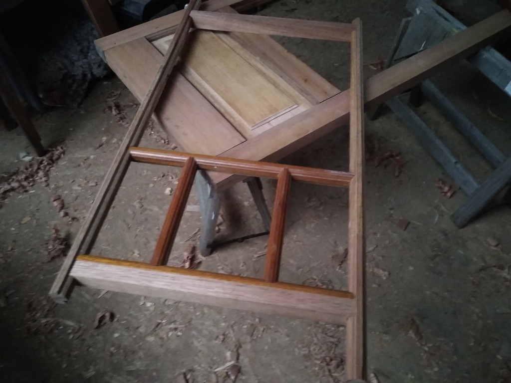 J'ai trouvé une porte en recyclerie de mobilier breton et des planches de meranti en materiautech (15 euros pour le tout).