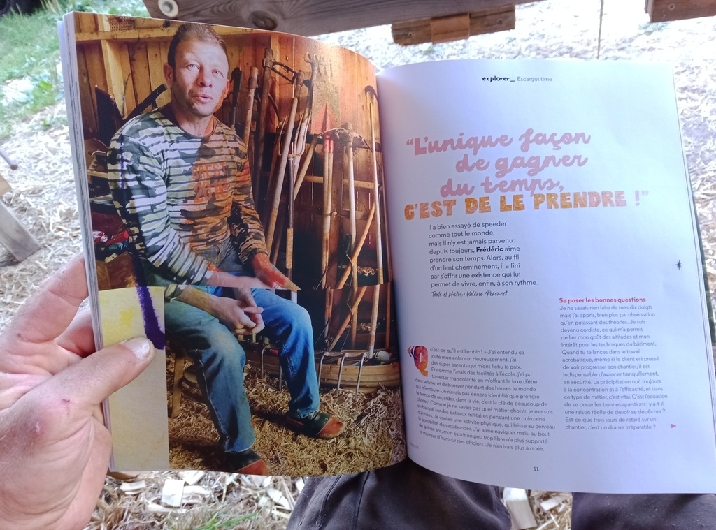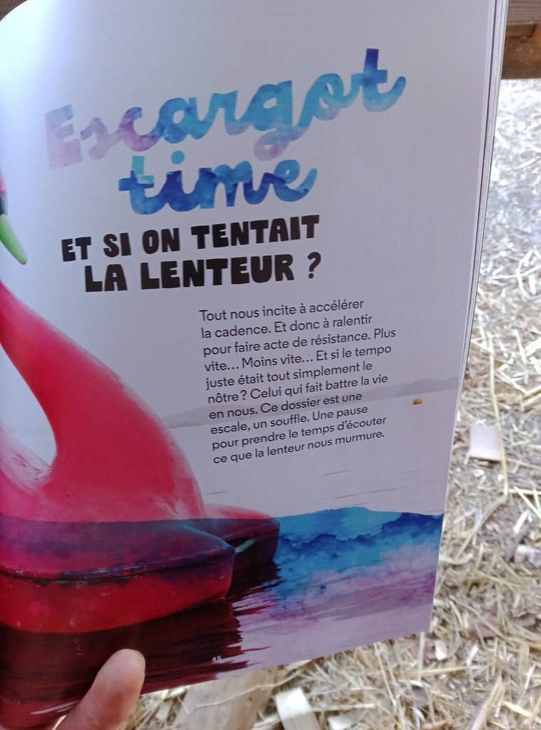 Et aussi, ma cliente/partenaire (et oui c'est comme ça que je vois mon job, c'est du partenariat , c'est plus humain et ça évite le coté royauté du client!) est écrivaine et participe à un magasine du nom de "walp" qui est le magasine de l'émission "nus et culottés", dans lequel ils ont faits un dossier sur le thème de la lenteur. Elle m'a donc demandé si j'acceptais d'être un des portraits.