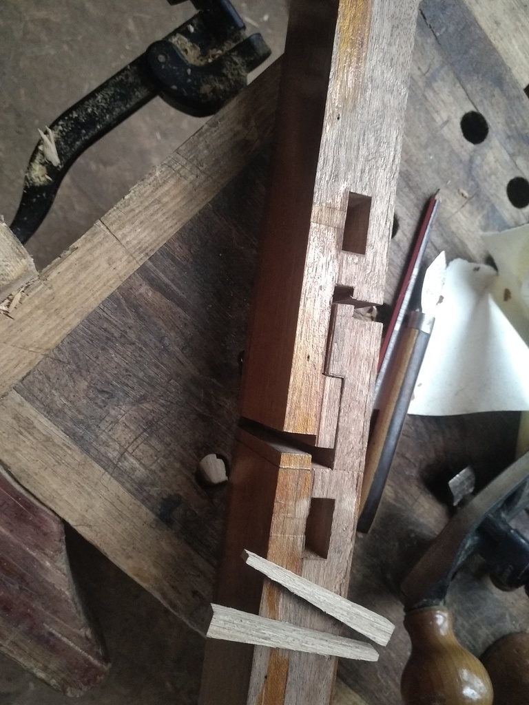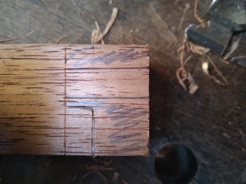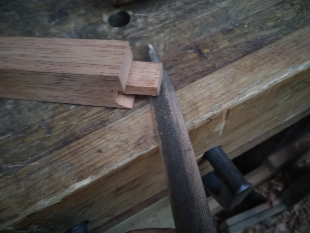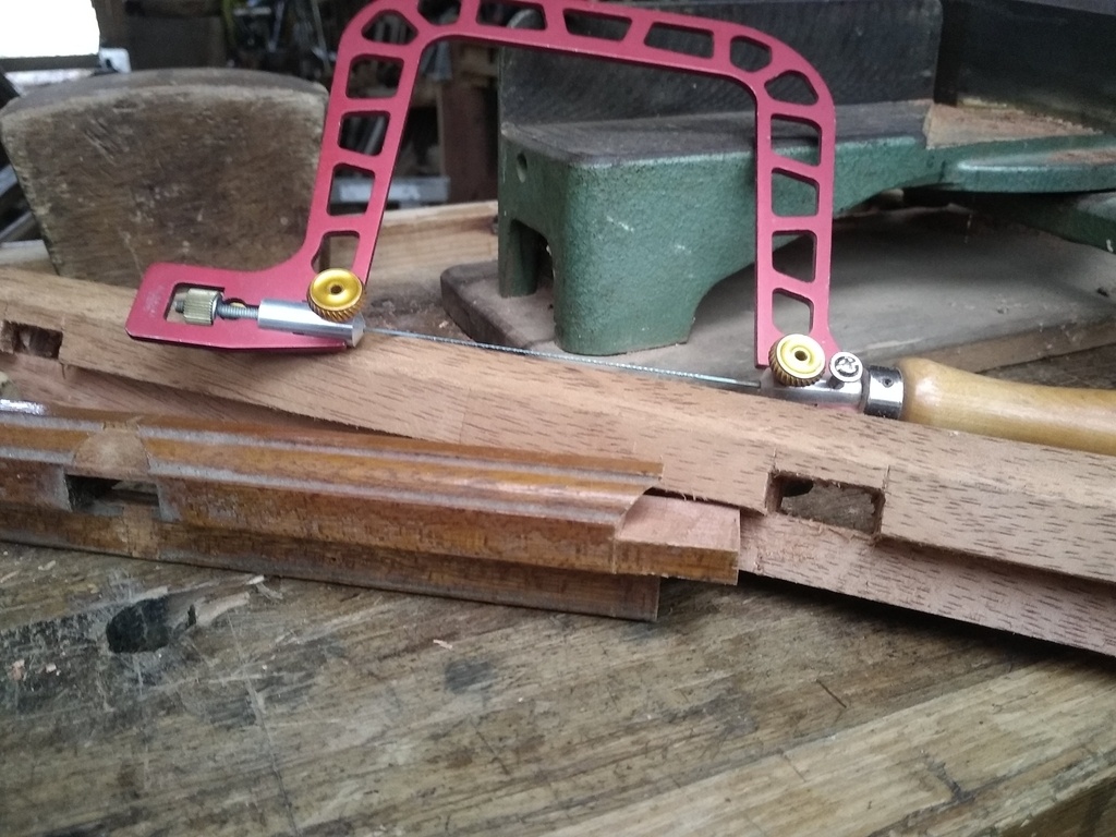 Il a fallu redimensionner les petites croix d'origine et ici pas d'enture mais j'ai recoupé les extrémités tenonnées et les ai refaites.