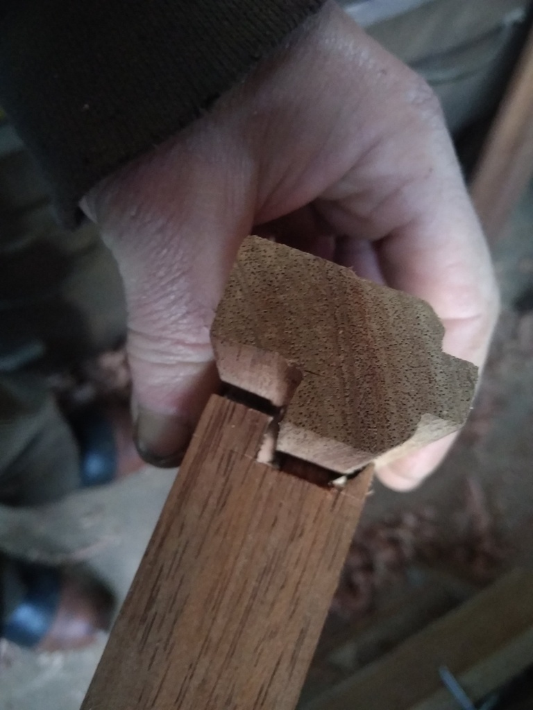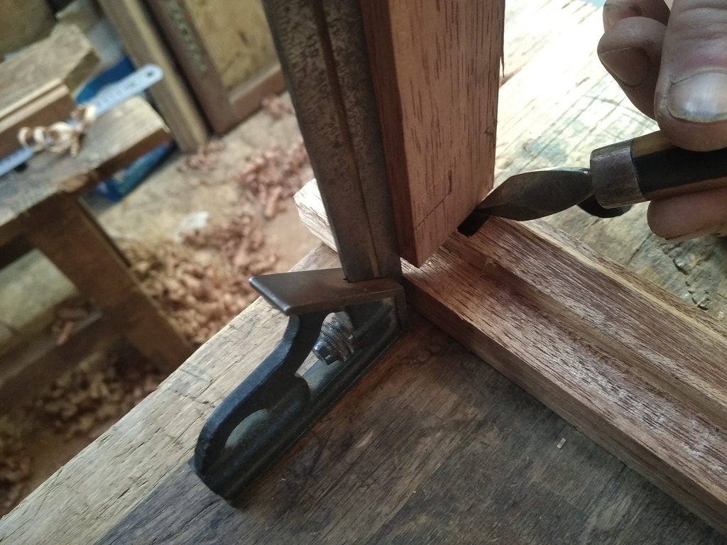 Il a fallu refaire un cadre dans les lattes de méranti.