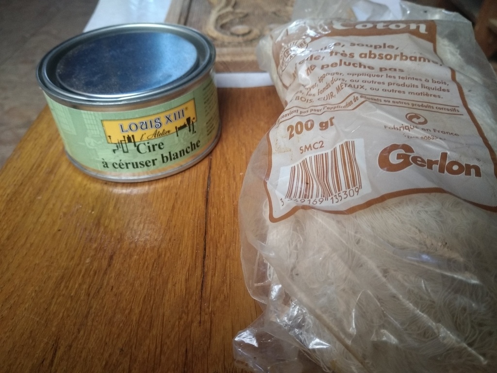 J'y ai rajouté des moulures d'autres meubles et appliquée une finition cérusée.