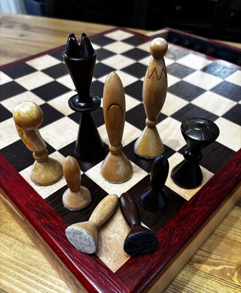 Pour l'anniversaire de son petit-fils, ma tante souhaitait lui offrir ses pions d'échec qu'elle possède depuis déjà bien longtemps. Elle m'a donc demandé si je pouvais lui réaliser un plateau semblable au premier déjà réalisé.