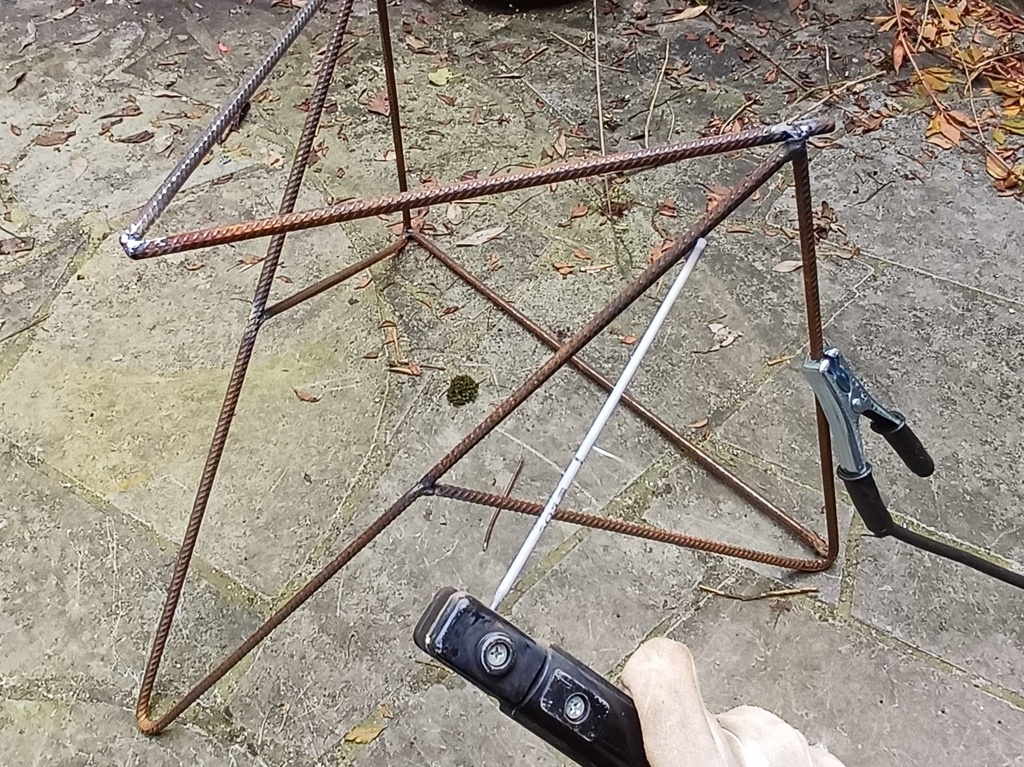 Soudure à la baguette, pliage à la main avec deux tubes de galva.