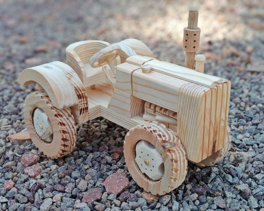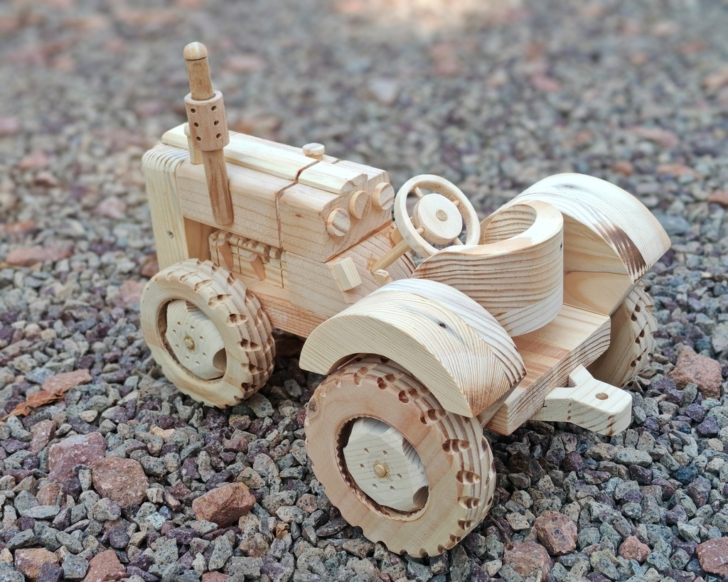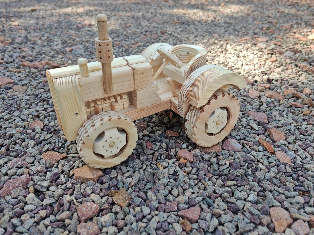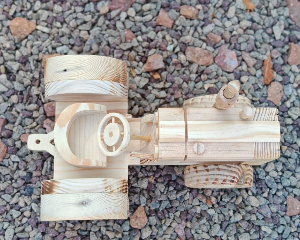 salut a tous un nouveau venu dans ma collection , après les 2 cv et les camions voici un tracteur en bois de palette