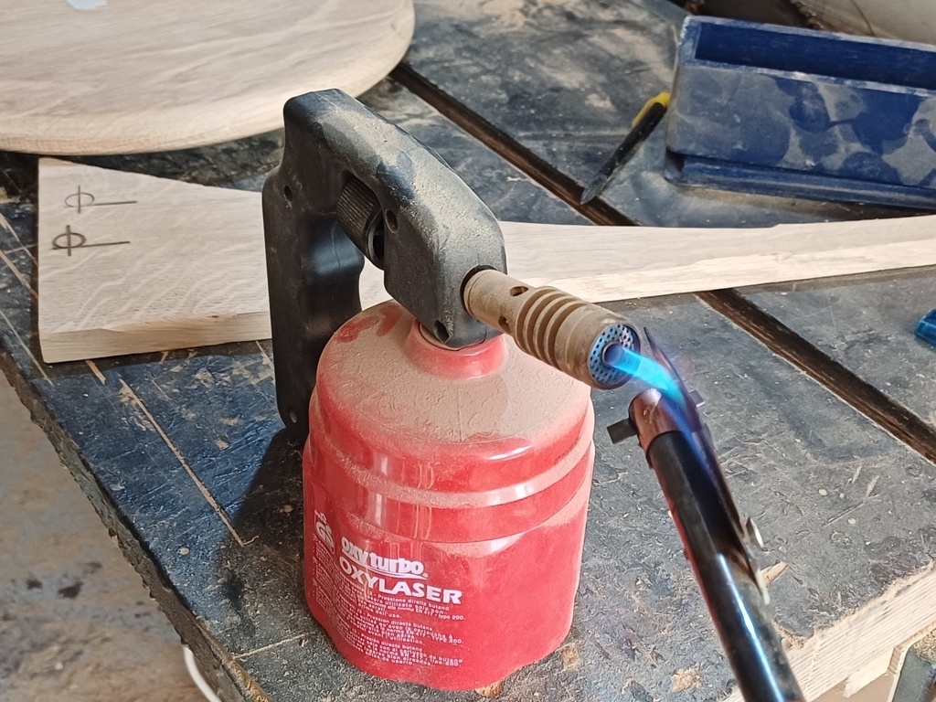 La jonction vue du haut et aussi brûlage du logo sous le plateau :