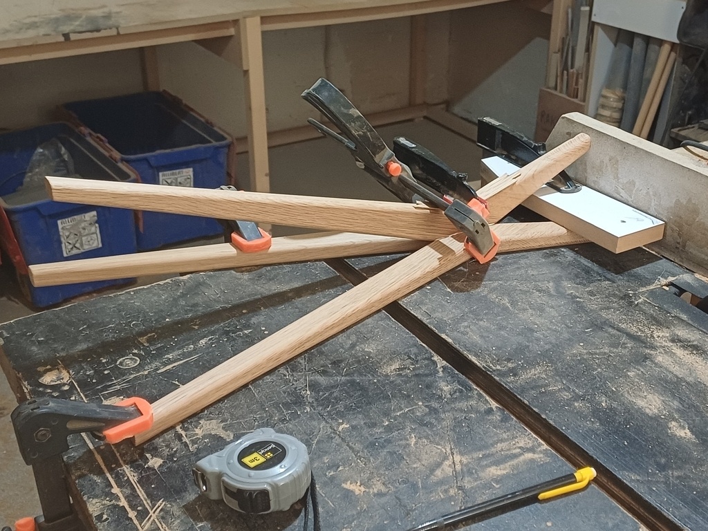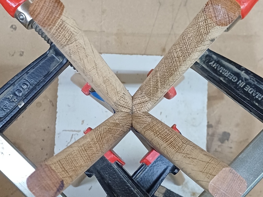 Ma stratégie pour le collage : deux à deux c'est difficile à cause des angles composés à aligner car les pieds se retrouvent à 90° l'un de l'autre.