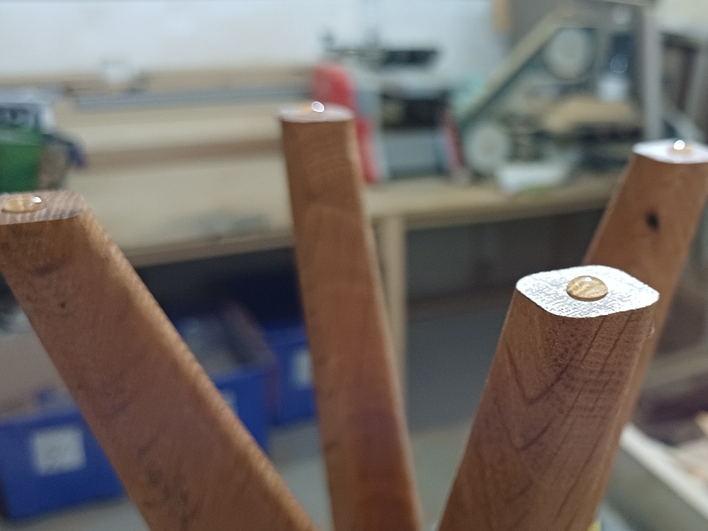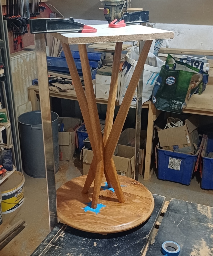 J'ai simplement collé le piètement sous le plateau à la superglue.