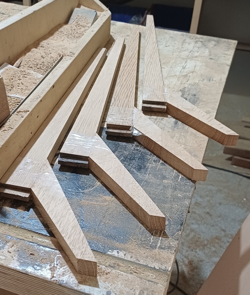 J'ai découpé les petits retour des pieds séparément, pour économiser du bois et du temps de rabotage.