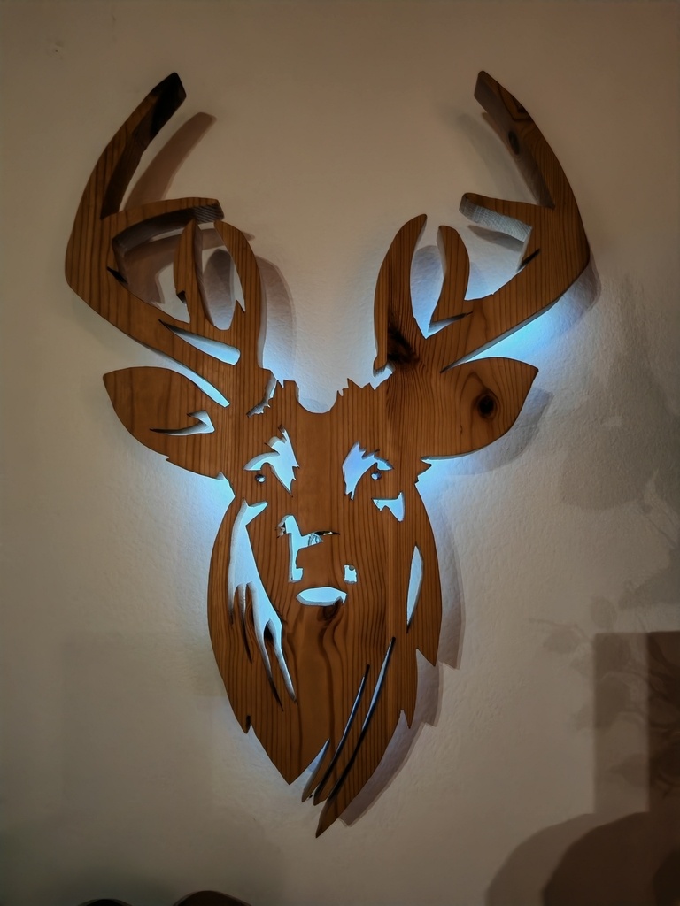 bonjour voici une nouvelle fabrication personnel un cerf découper a la scie a chantourner avec un interrupteur et une bande led a l'arrière collé a la colle a bâton , la pile est logé dans la découpe du bois , la pile est une cr3025 , bonne journée a tous a la prochaine fabrication