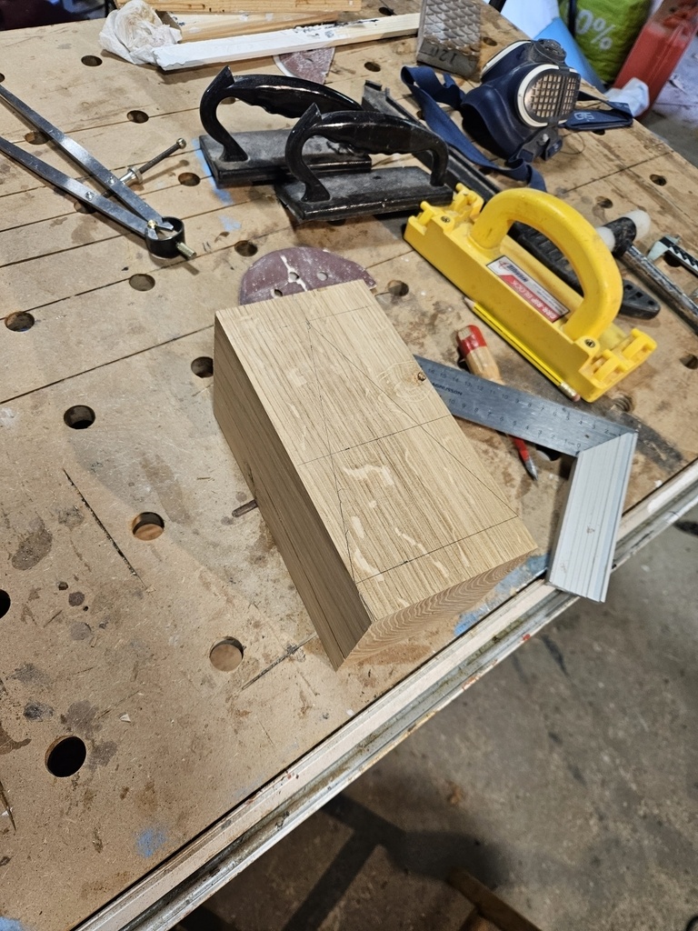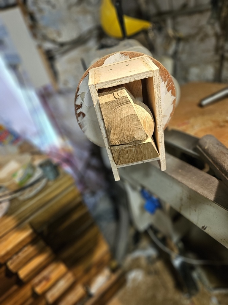 Nairod et Amadeus41 , il faut regarder le plan sketchup. La pièce repose sur un dièdre de 17deg ce qui fait que le centre de la face (face en bois de bout) la plus élevée se retrouve être une pointe lorsque l’on tourne les 4 faces.