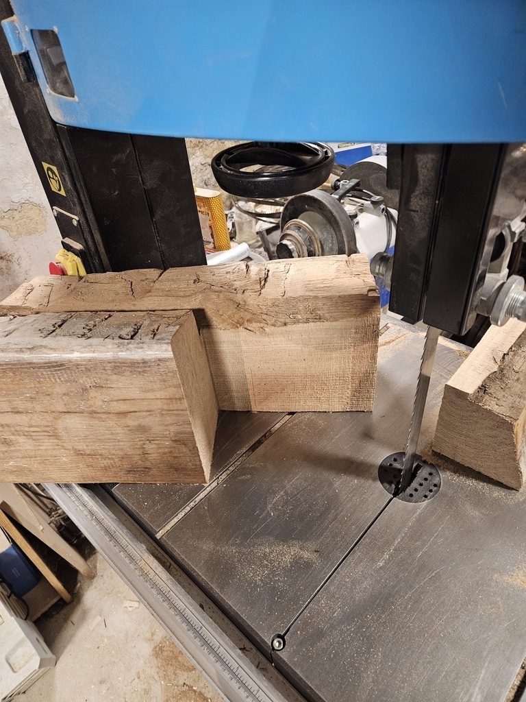 On part d'une poutre en chêne vieille de plus de 100 ans (qui pourtant va craquer pendant le travail, on le voit en regardant bien les photos).