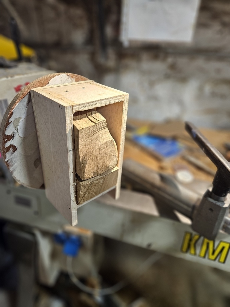 Il faut aussi une grande précision dans la manière dont on fixe la boite sur le support pour que le centre de tournage soit exactement le centre de la sphère.