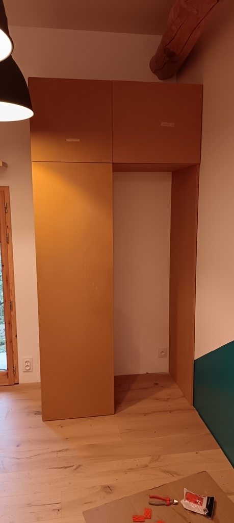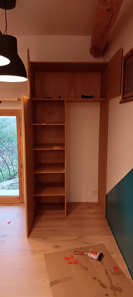 Voici une réalisation du week-end, chez ma sœur. Il s'agit d'un meuble de cuisine pour pouvoir mettre le réfrigérateur dedans.