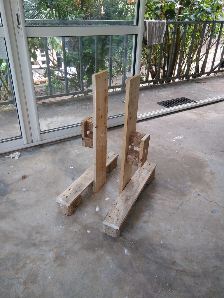 Les deux morceaux de bambou servent à maintenir l'ensemble en position "en l'air".