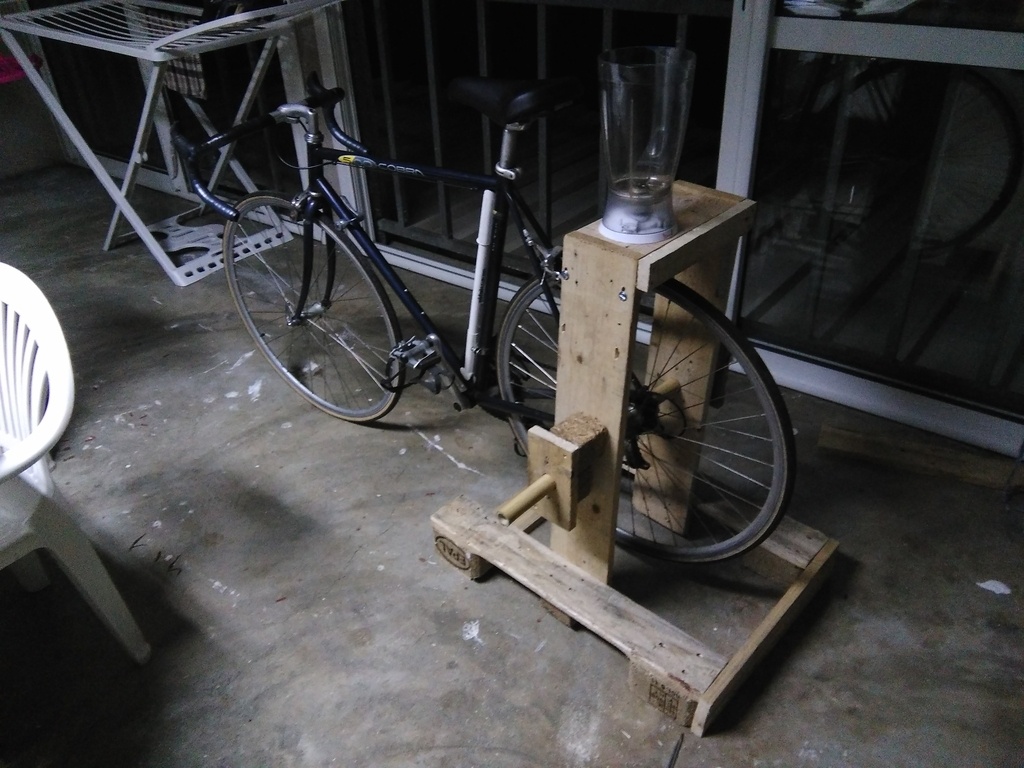 Super projet ! Peux-tu stp nous expliquer comment la roue du vélo communique avec le mixeur ? Sur une photo on voit un rond noir à l'horizontal. Est-ce à mettre en contact avec le pneu ?