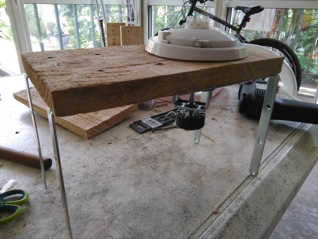 La roue est effectivement surélevée, elle reste fixée serrée au velo. Les deux morceaux de bambou servent à maintenir l'ensemble en position "en l'air".