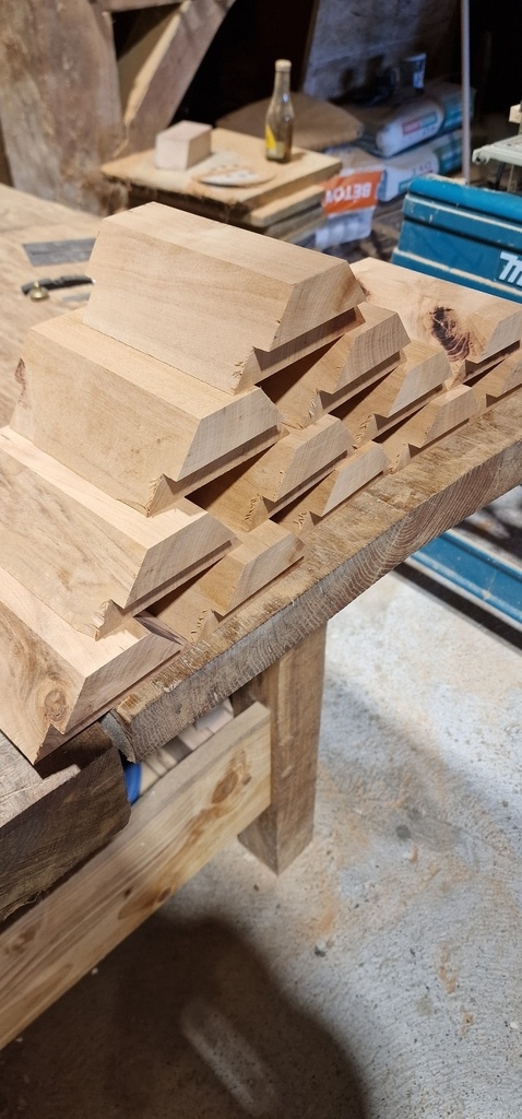 Entièrement fait en cerisier, sculpté au ciseaux a bois et dégrossi a la défonceuse.