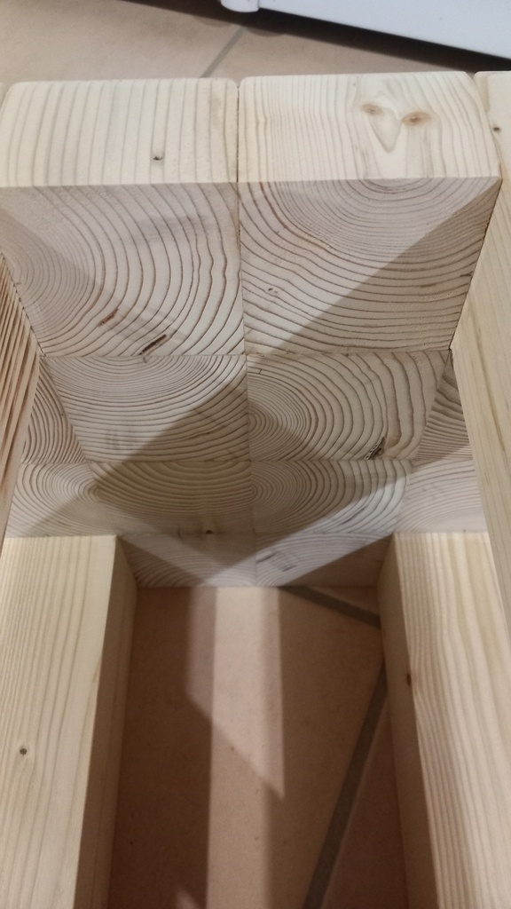 Fixation des éléments par Lamello et colle pour les petits carrés.
