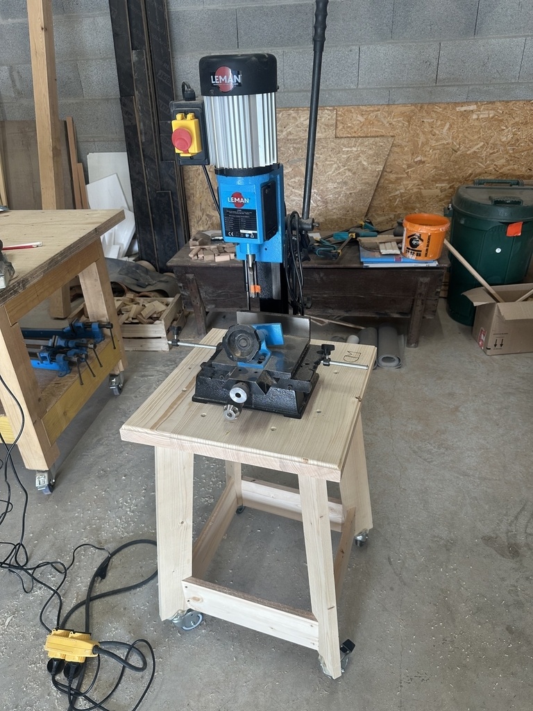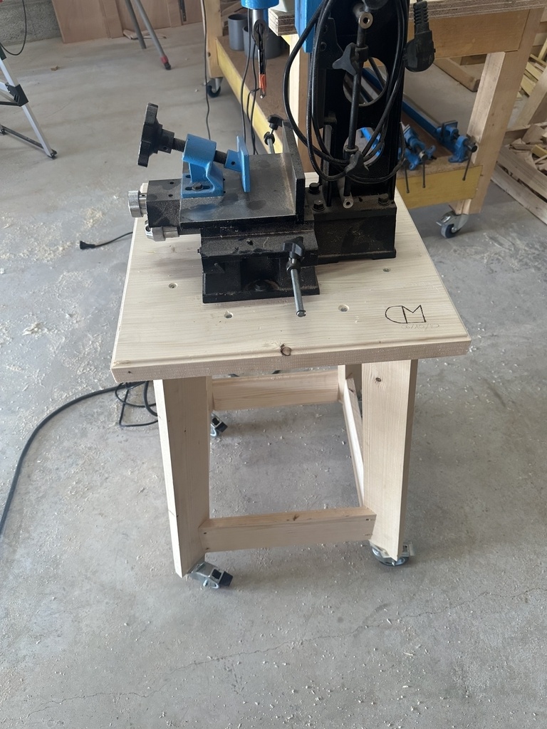 De base j’étais dans l’idée de faire un tabouret mais après avoir compris que l’assise était un peu grande je me suis dit que c’était mieux de mettre la mortaiseuse dessus pour une facilité d’accès