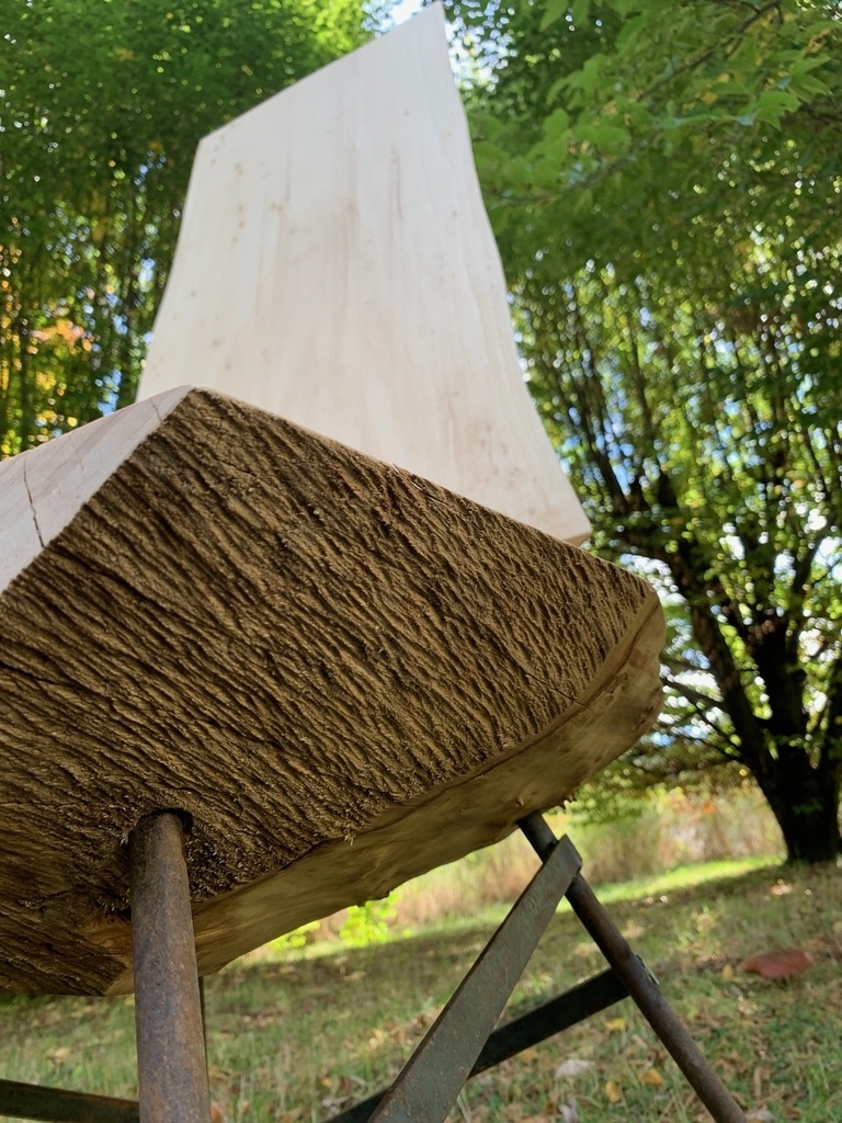 L'idée étant de garder l'esprit brut de cette dosse, je suis parti sur un piètement simple et minimaliste pour ne pas la dénaturer.