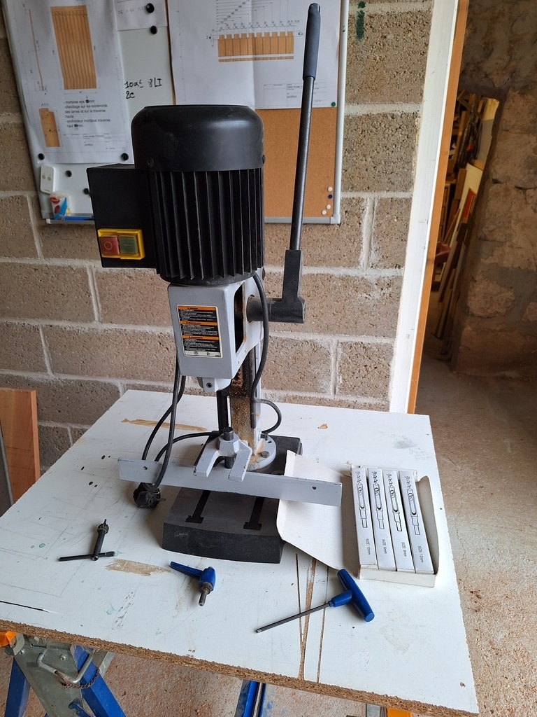 Pour les mortaises, j’avais acheté une petite mortaiseuse à bédane carré. Elle fait le travail, mais quand on est habitué à une mortaiseuse lourde, ça pique un peu ! Ensuite, un coup de scie pour les arasements, car je n’avais pas trop confiance dans l’équerrage de ma table à tenonner maison.