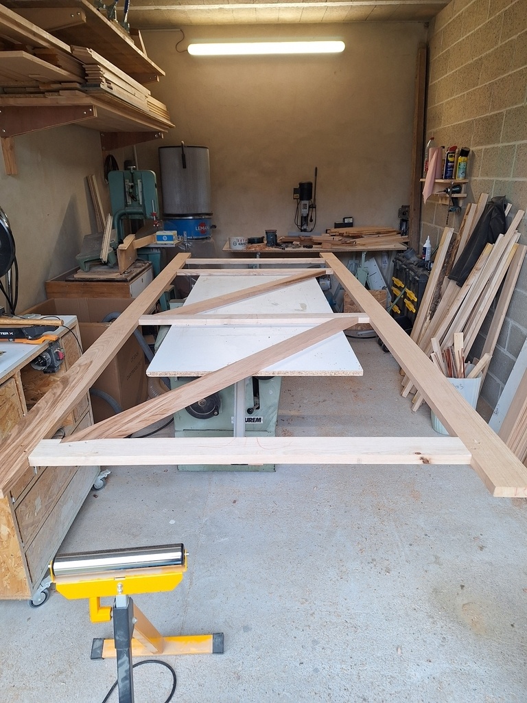 Alors, le premier défi a été l’organisation de l’atelier : comment fabriquer deux vantaux de 3000 x 1250 dans un espace de 5 x 3 m ? Eh bien, heureusement que la Lurem C260N ne prend même pas 1 m², et que tout le reste est sur roulettes !