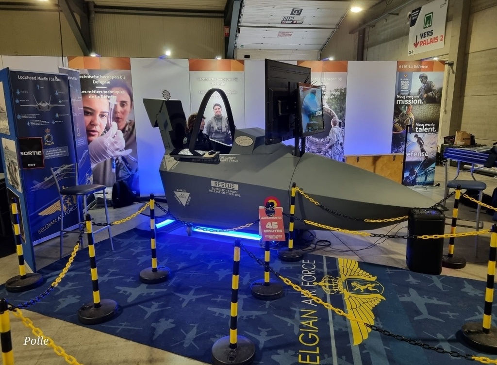 Réalisation avec les élèves d'un cockpit à l'échelle 1:1 pour l'armée de l'air Belge lors de ses meetings et journées de recrutement. Le siège coulisse pour permettre aux futurs pilotes de se mettre dans le cockpit et le nez se décroche via un système de blocage auto-serrant afin de gagner de la place lors du transport.