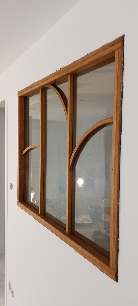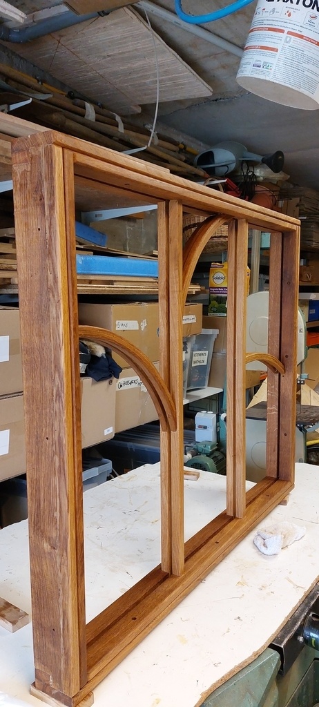 Il n'y a qu'une seule vitre qur toute la verriere. Elle est prise en sandwich entre les montants et le parties arrondies que j'ai réalisées en symatrique.