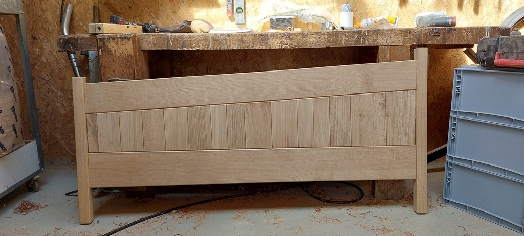 En revanche le matelas etant assez epais (commandé après avoir réalisé le lit...), on ne voit presque plus la tête de lit... dommage
