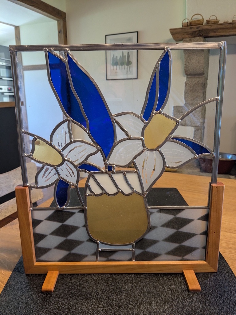 Ma plus jeune fille étant dans le vitrail, fabrication de de 2 petits présentoirs pour ses premiers travaux en CAP, en fruitier (pommier, poirier cerisier ou ? je ne sais pas ...) .