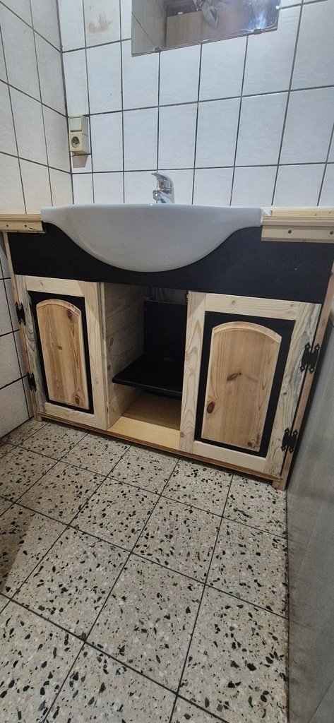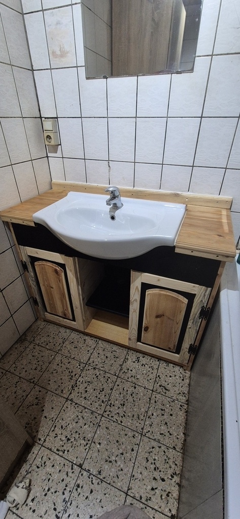 J'ai remplacé mon ancien meuble sous lavabo d'Ikea par celui-ci, que j'ai fabriqué moi-même en bois.