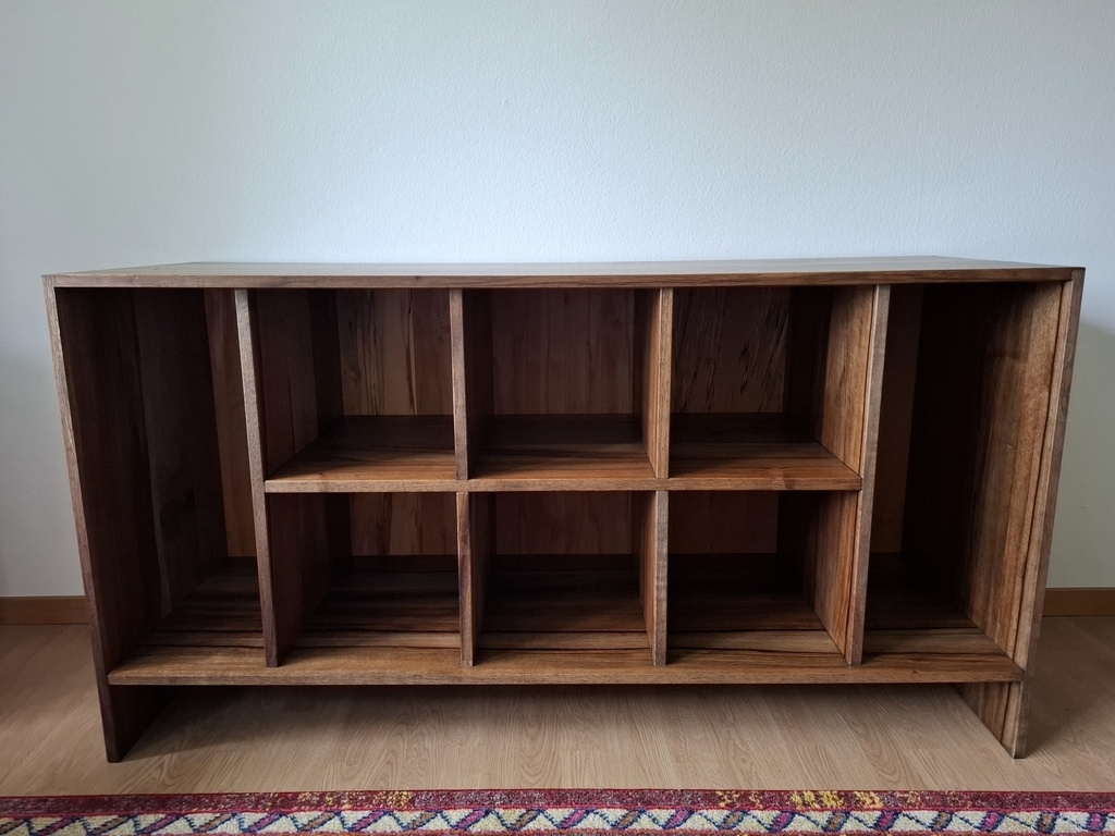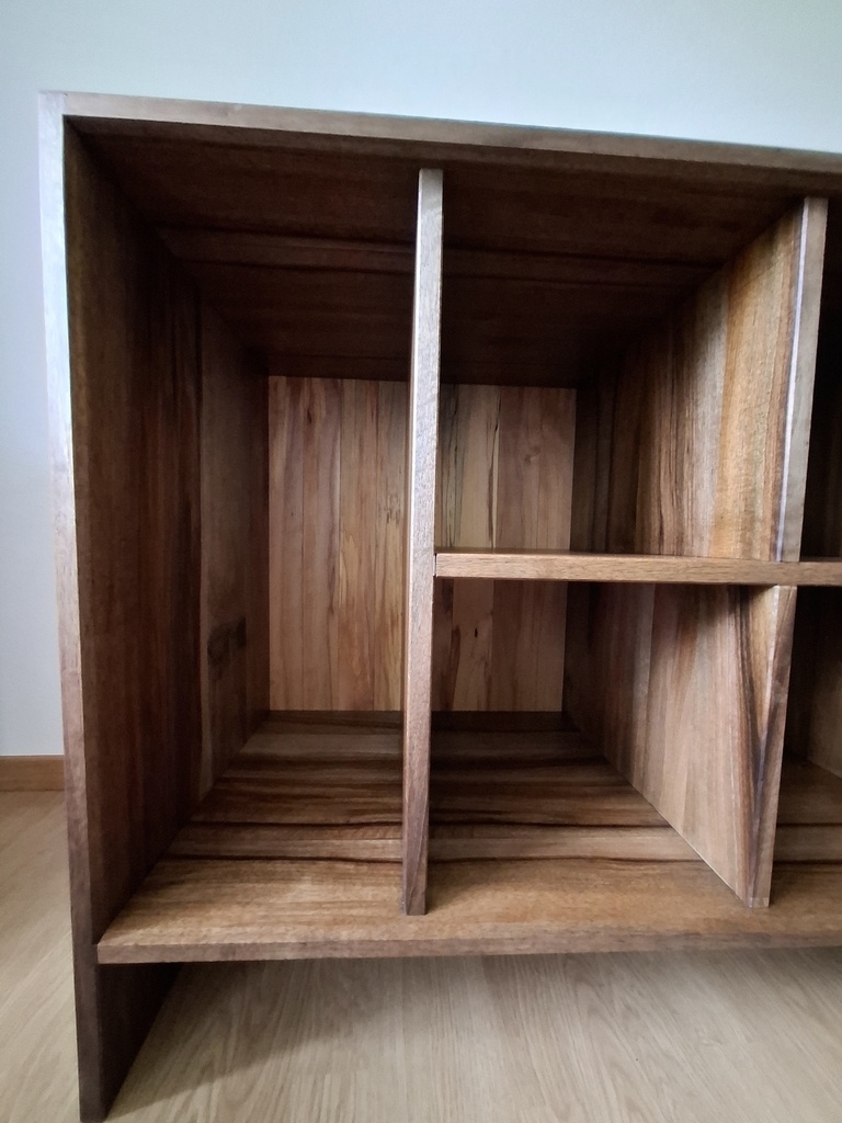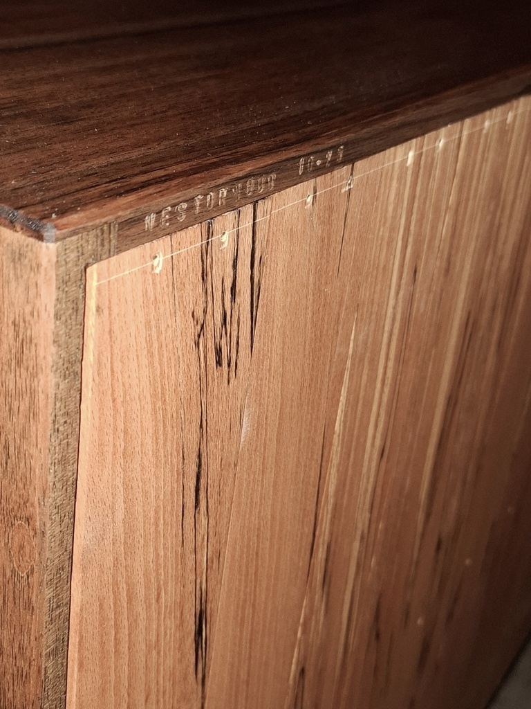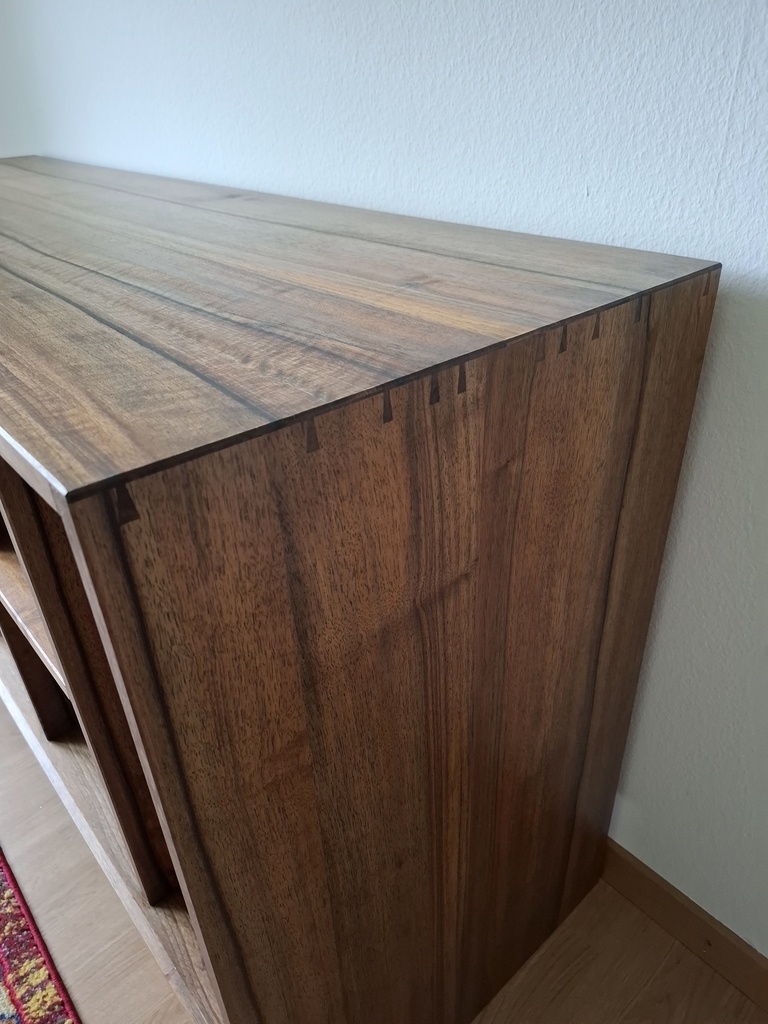 Grande première avec les assemblages à queues d’aronde étroites recouvertes. J’aurais du pousser jusqu’à des coupes d’onglet en façade...