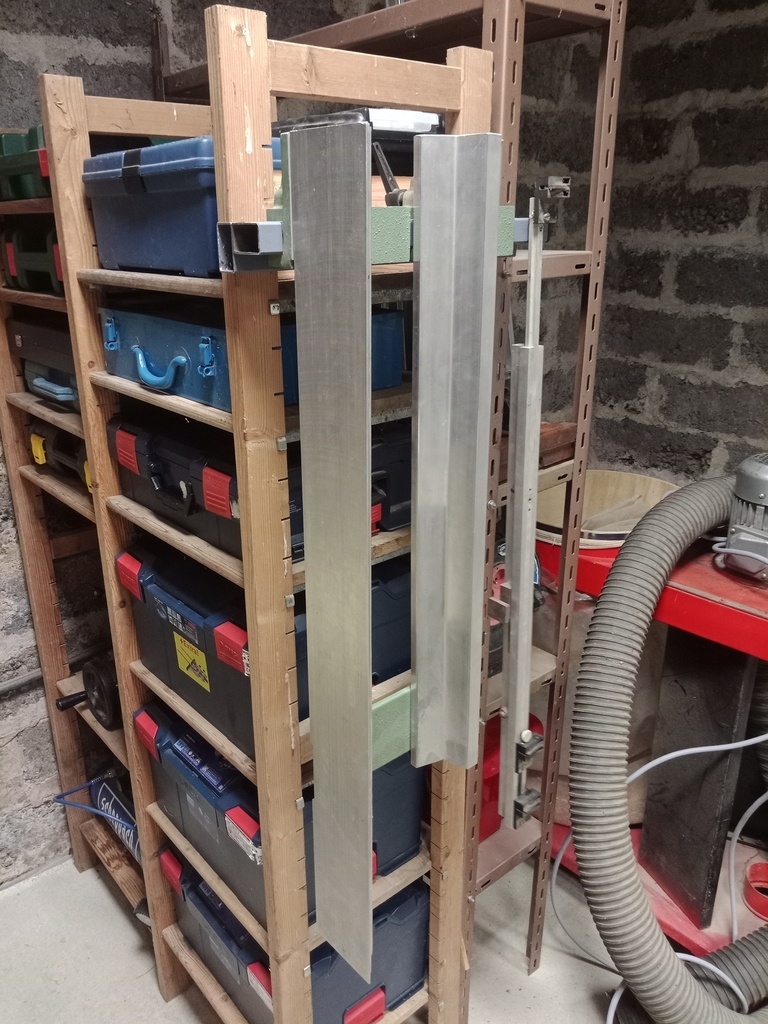 Rangement des guides de ma combiné en tête de gondole de mes rangements d'outils électro-portatifs.