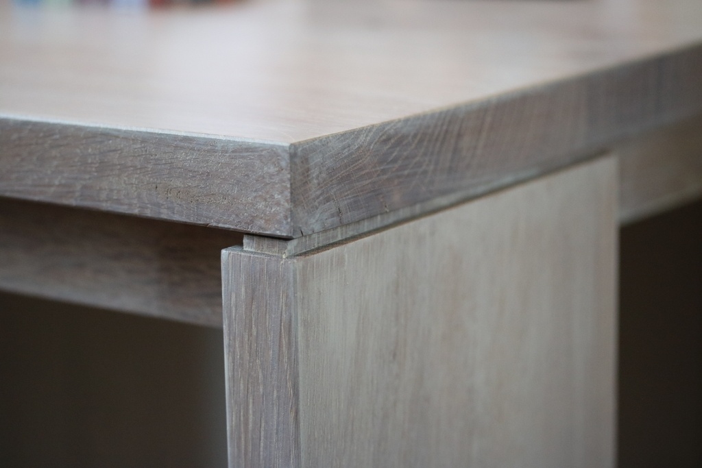 Ensemble constitué d'un bureau et d'un caisson à tiroir en chêne massif. Finition Rubio blanc.