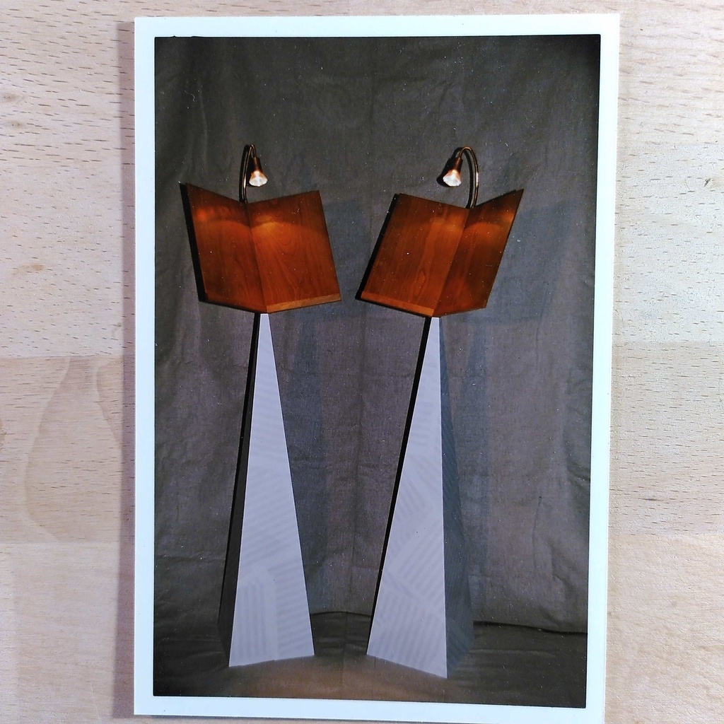 Base pyramidale (épure et coupes selon l'angle de corroyage) en mdf de 6 mm, papier musique ancien marouflé.
