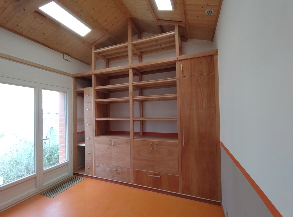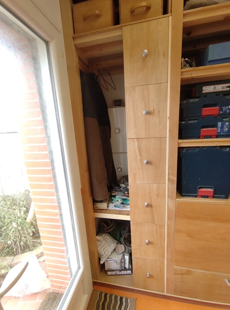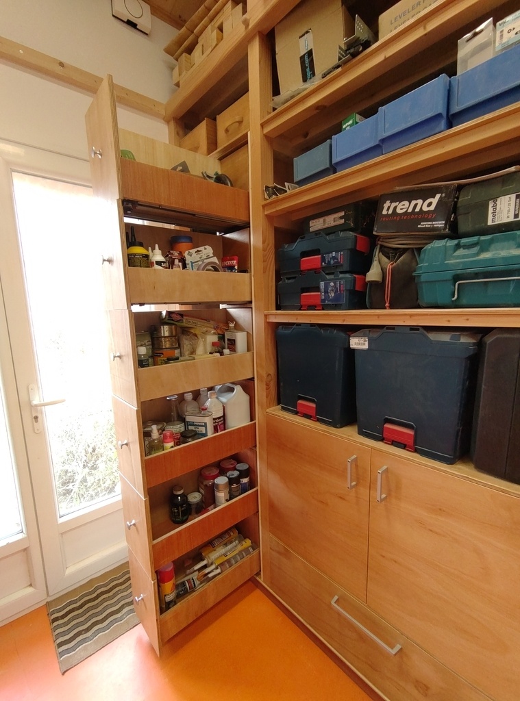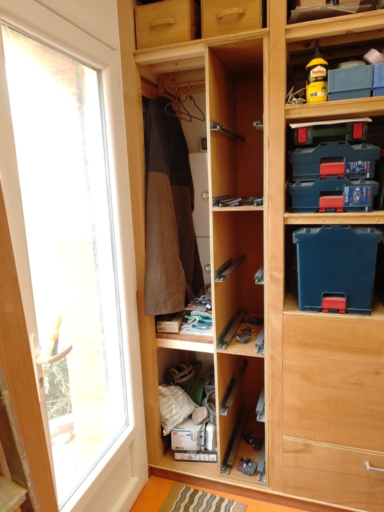 Enfin, je réalise des portes et des tiroirs avec du contreplaqué et grâce à une lamelleuse.