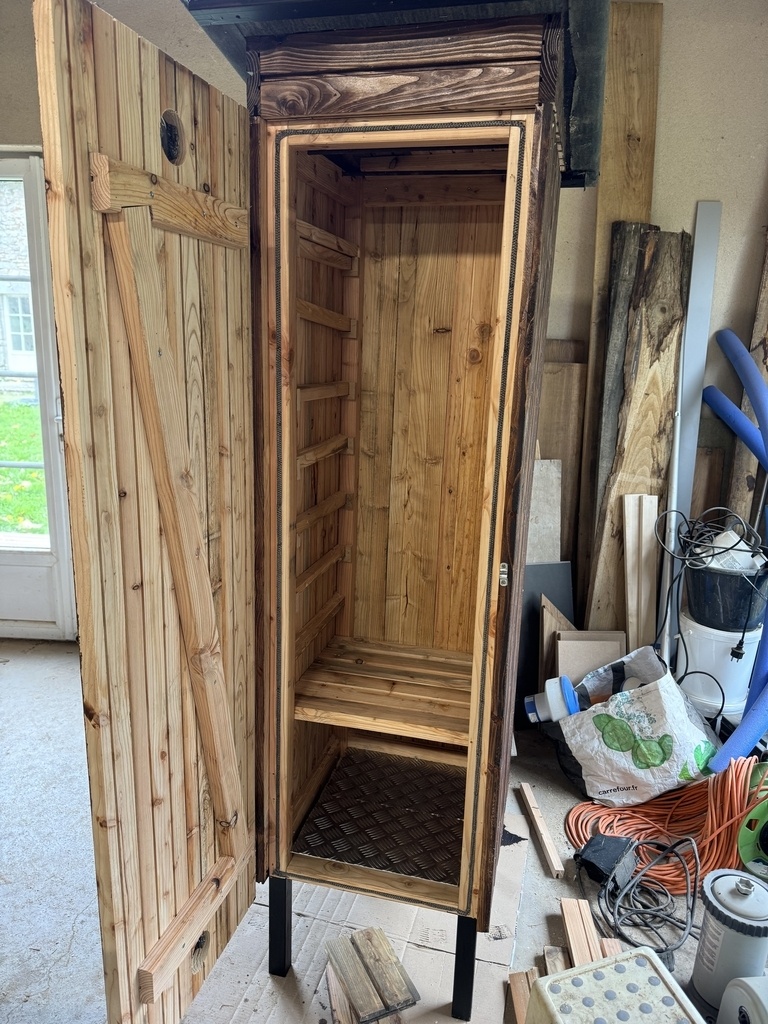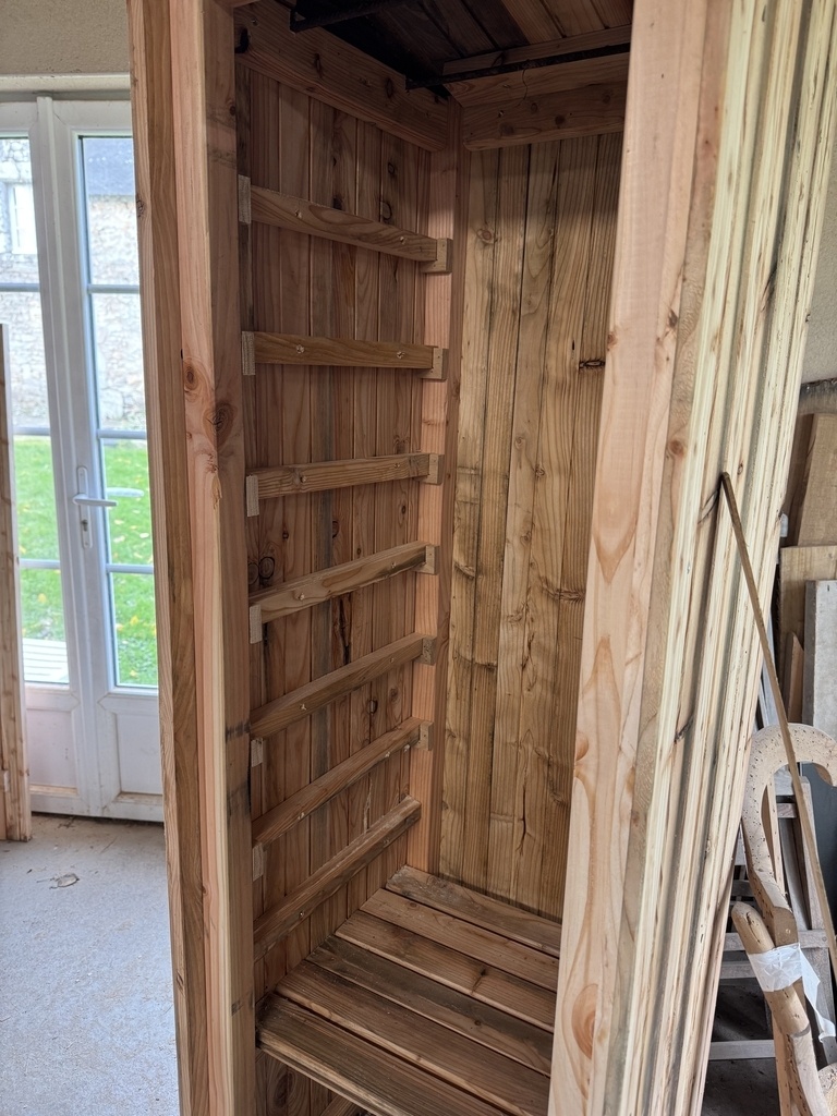 Il va rester à l'extérieur, et j'ai donc choisi le mélèze (bardage déclassé trouvé chez Articonnex).