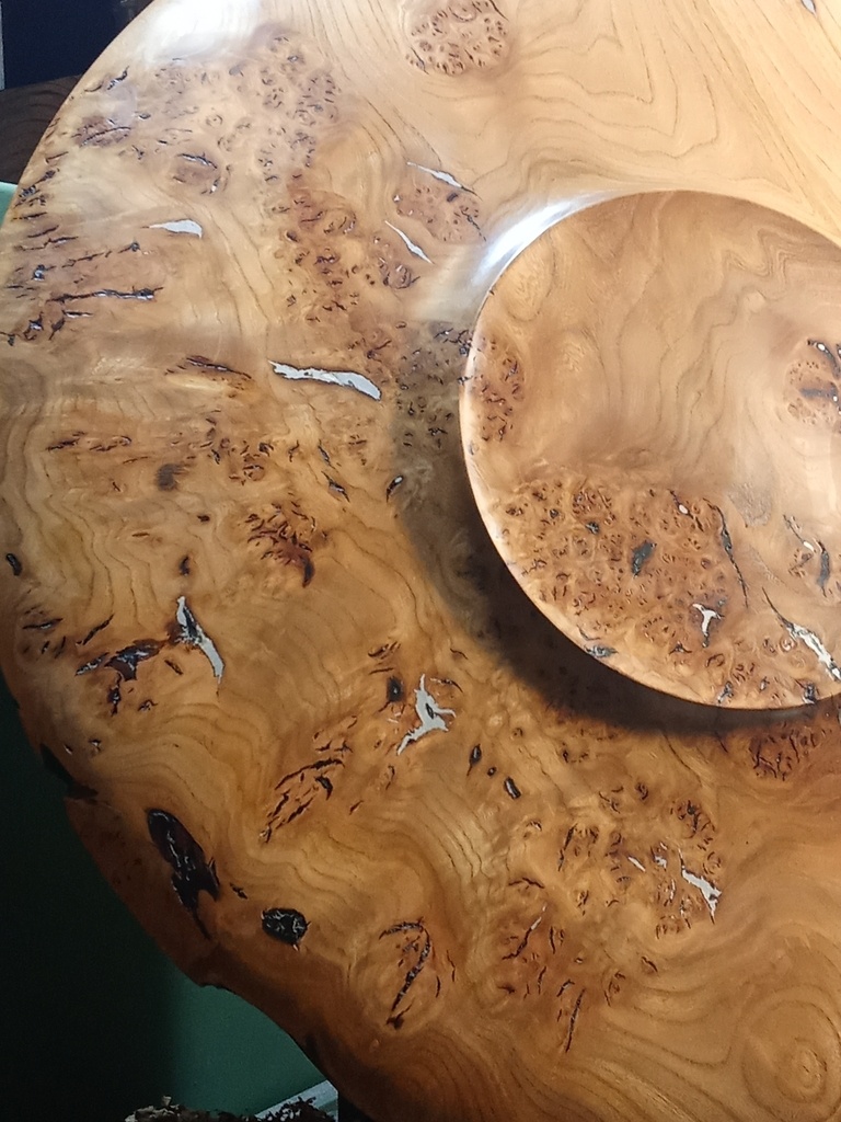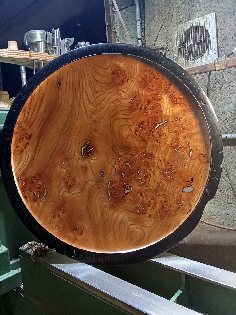 Mon nouveau tour à bois est arrivé à la maison, pour l'inaugurer quoi de mieux que de faire quelque chose avec cette rondelle de loupe d'orme qui attend dans le fond de l'atelier depuis un an ?