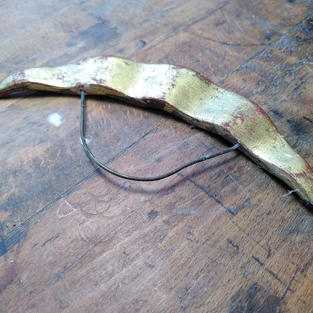 Réalisé dans la fin des années 80, en merisier, passé au gros blanc, puis à l'assiette à dorer, et enfin doré à la feuille.