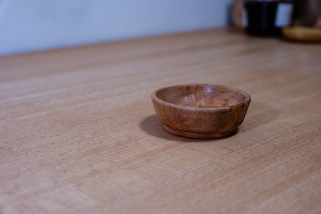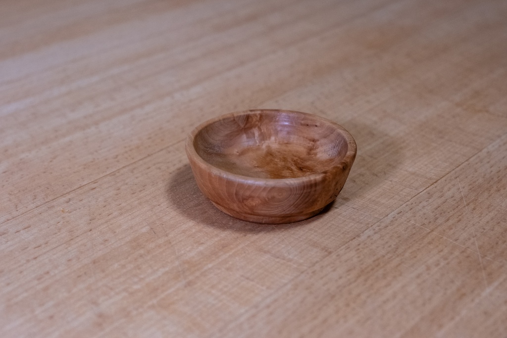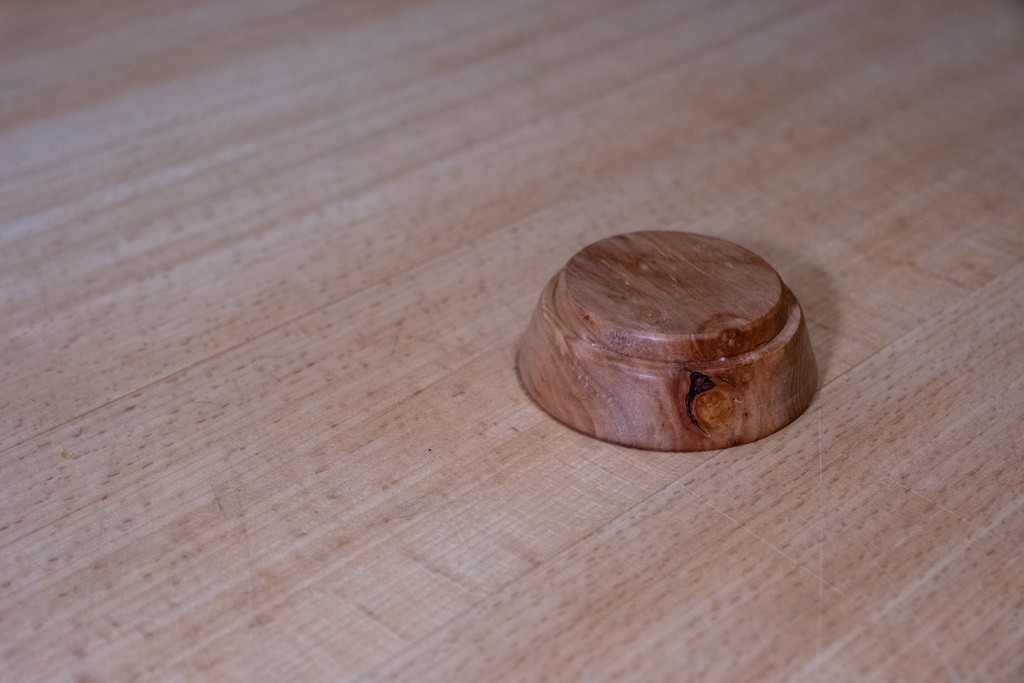 Bon j'étais bien parti avec une sorte de petit bol design sympa mais avec les plantages de gouges j'ai pété la moitié de ma pièce et me retrouve avec un pauvre reste de bol à peine assez grand pour 3 noyaux d'olives