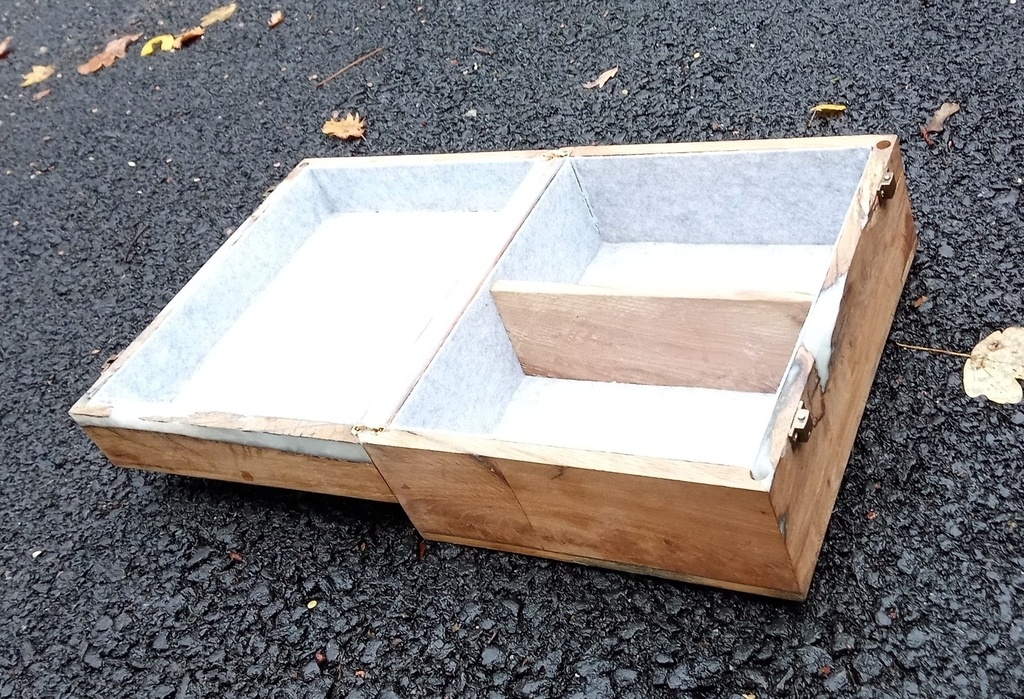 les cotés de la boite ont été découpés dans une vieille poutre du 17e,