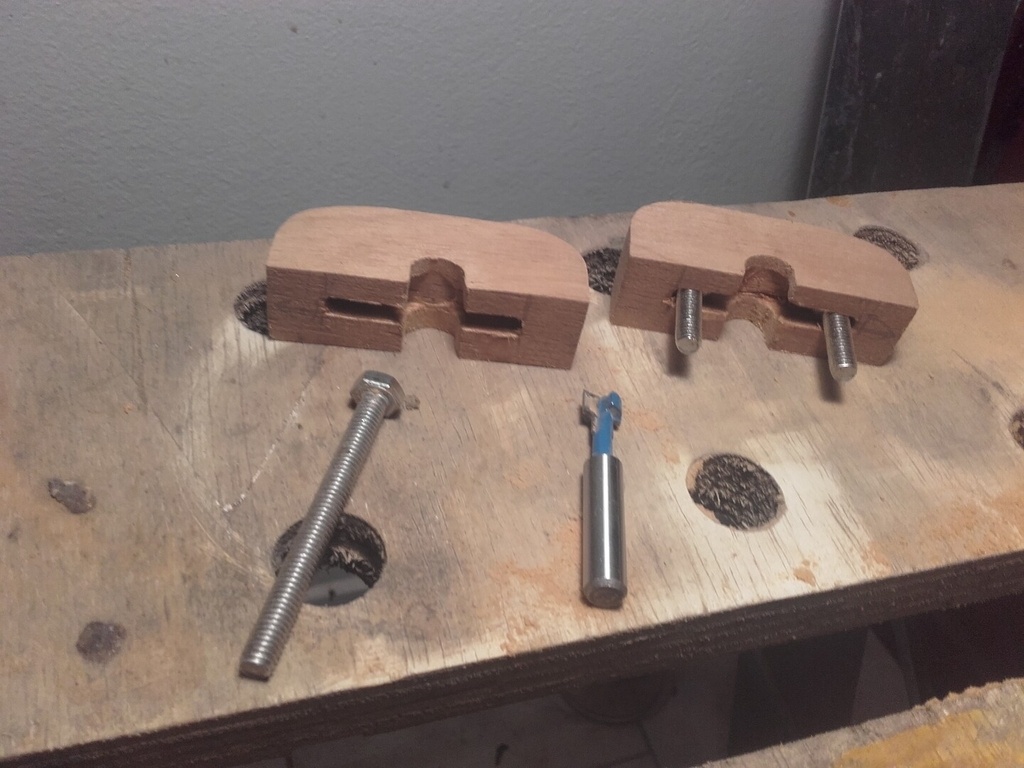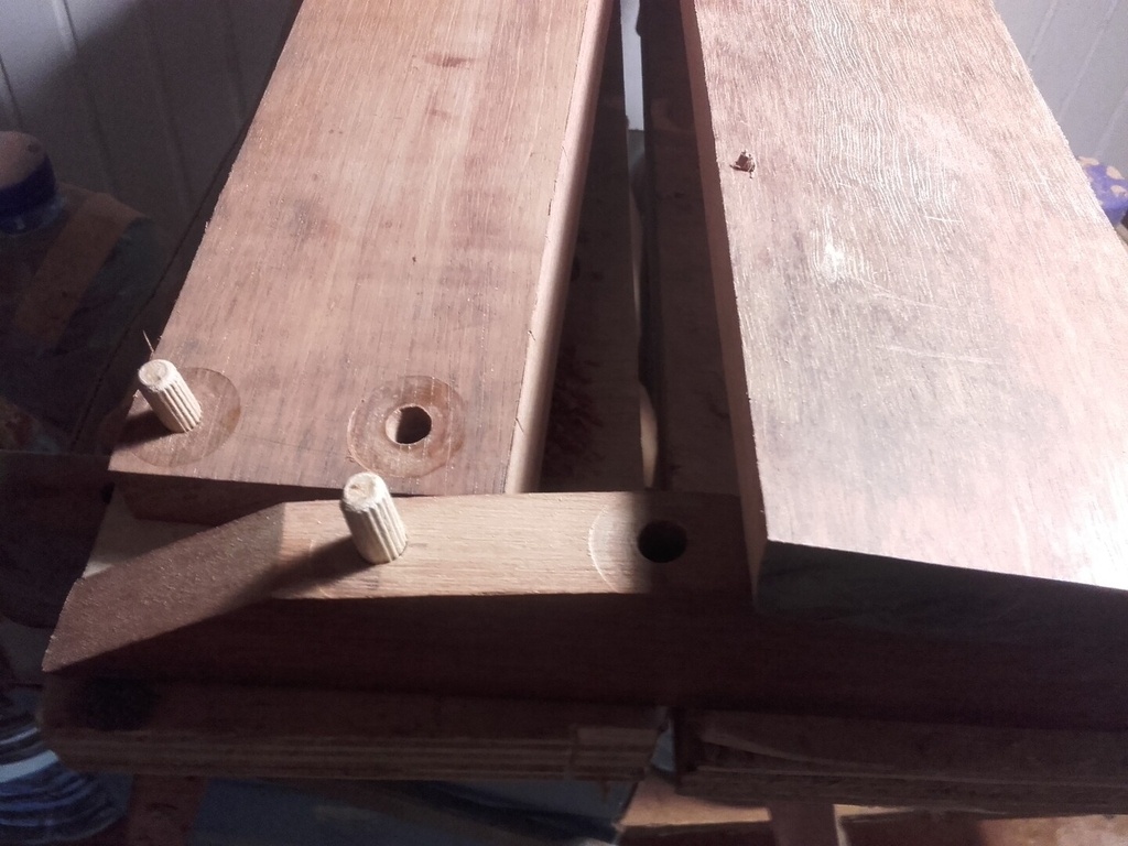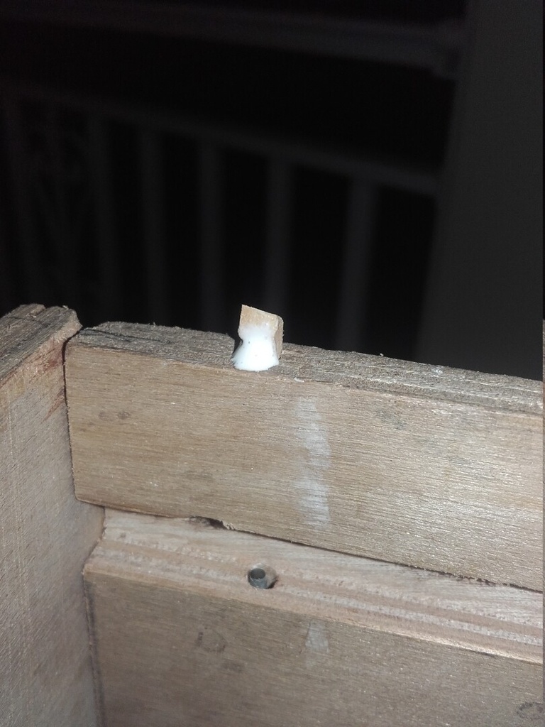 - j'ai fait 2 fixations de poignées boulonnées avec les têtes cachées dans le bois et des écrous à l'intérieur, pour qu'il puisse les démonter pour faire de belles poignées de coffre matelotées (tout un art) ;