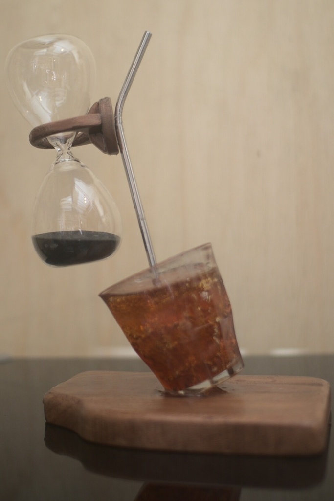 J'avais peur de le casser en le faisant rouler (même si son sable le stabilise), j'ai décidé d'en faire un support très basique dans une chute de planche de pin traité issue de mes travaux, mais un petit accident en coupant mon bois m'a donné l'idée d'aller chercher dans mon stock de chutes de bois de construction navale (c'est de l'acajou pays) pour faire quelque chose de bien plus original avec cet anneau de bois dont le sablier est prisonnier.