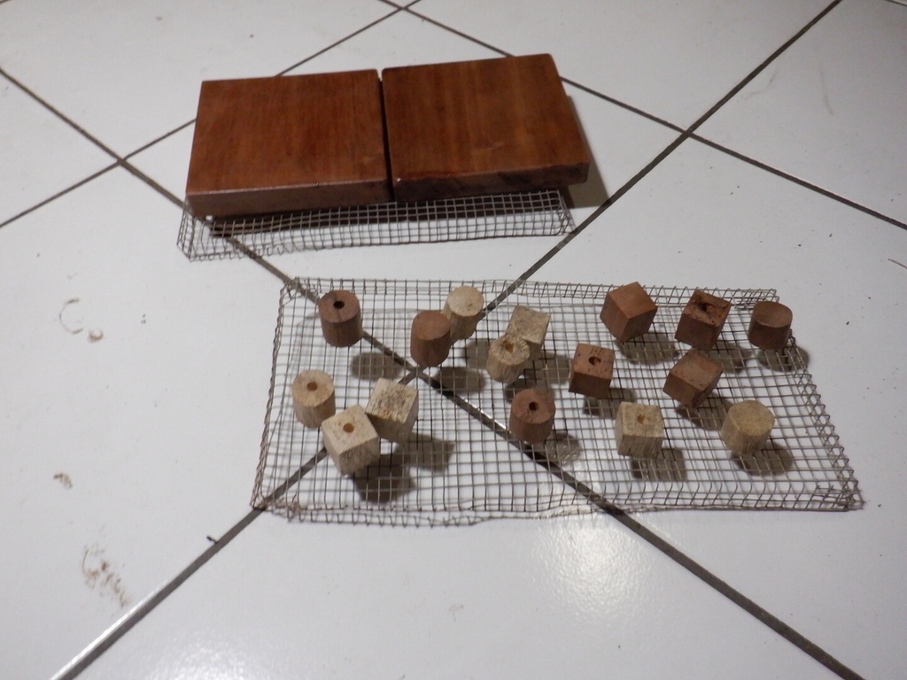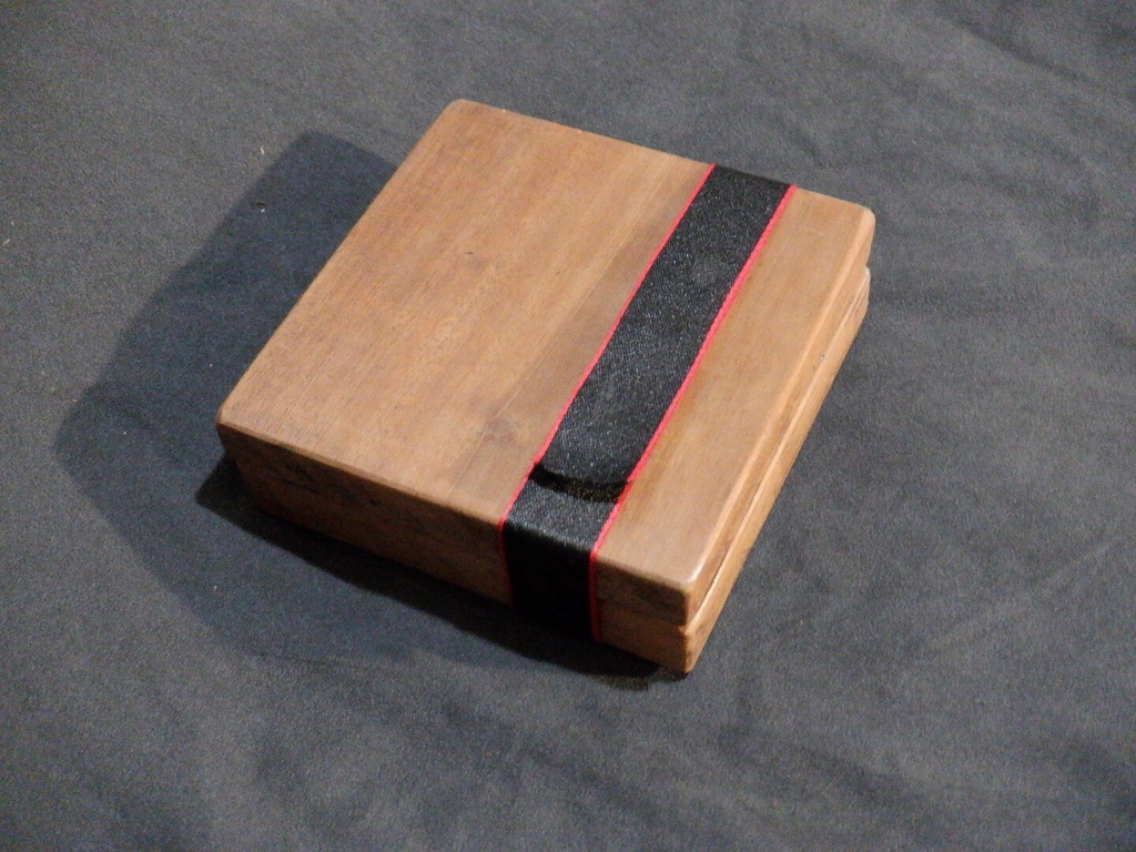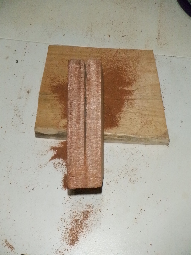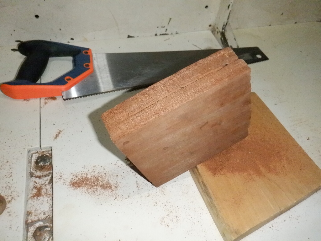 J'ai utilisé des chutes de bois de construction navale que j'avais. le sombre est du mahogany ou de l'acajou rouge, le clair est du poirier pays ou de l'acajou blanc.