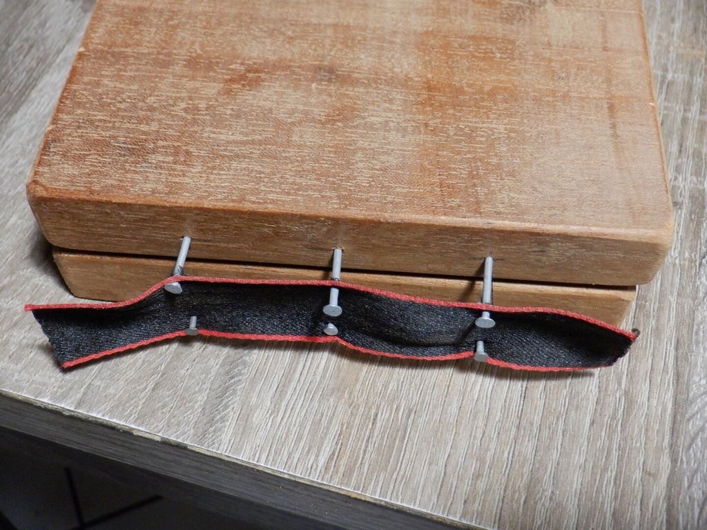 La boîte fait 13cm de côté. J'ai fixé un ruban comme charnière et un autre faisant le tour et servant à tenir la boîte fermée avec du velcro.